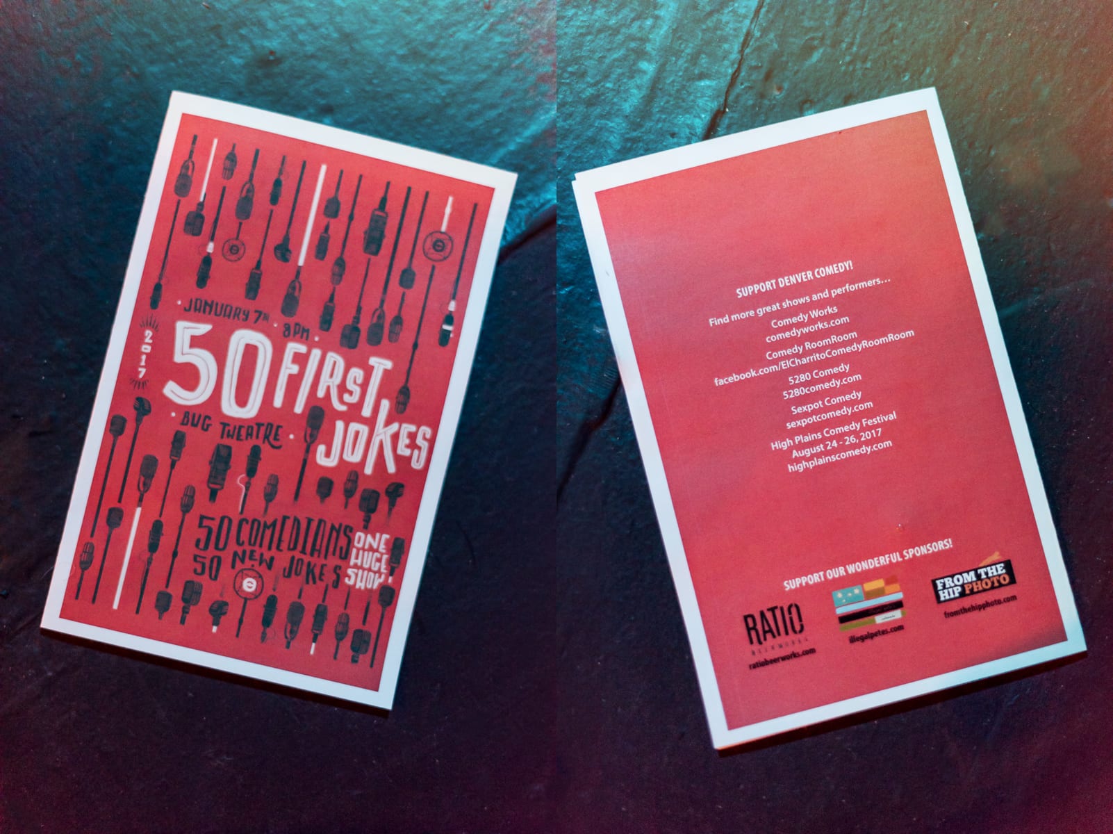 What better way to kick off the New Year than with some good old-fashioned comedy? We had the privilege of sponsoring 50 First Jokes Denver 2017 at The Bug Theatre. In the spirit of a new year, the 50 First Jokes comedy event brought together 50 of Denver’s best comedians to deliver their very first jokes of 2017. Happy New Year? More like Laughing New Year! Now, these weren’t your typical “same song, third verse” quips. These were never-before-heard, totally undisclosed, completely original jokes that made their grand debut on this night.