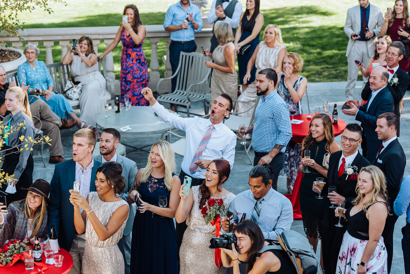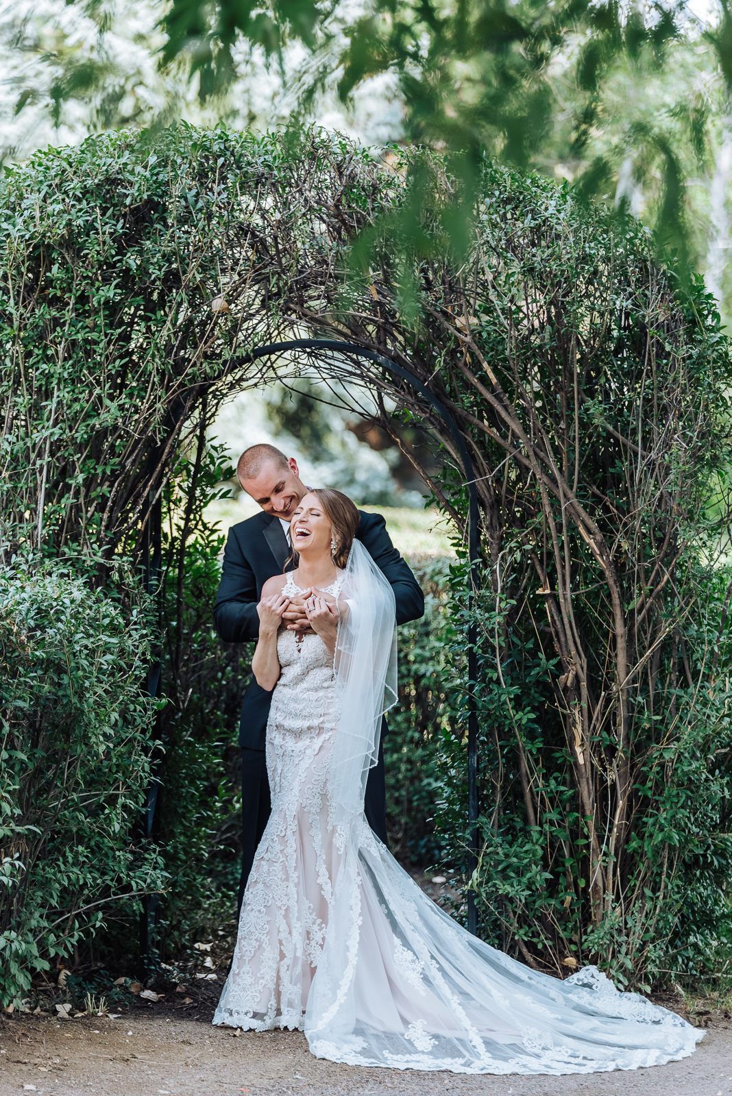 The church was the perfect venue for Kiki and Justin’s wedding. The elegant decor complimented the bride and groom’s classy attire. But although the service was reverent, the wedding wasn’t totally solemn! After some gorgeous outdoor photos, Kiki, Justin, and their loved ones cut loose and celebrated their commitment to each other.