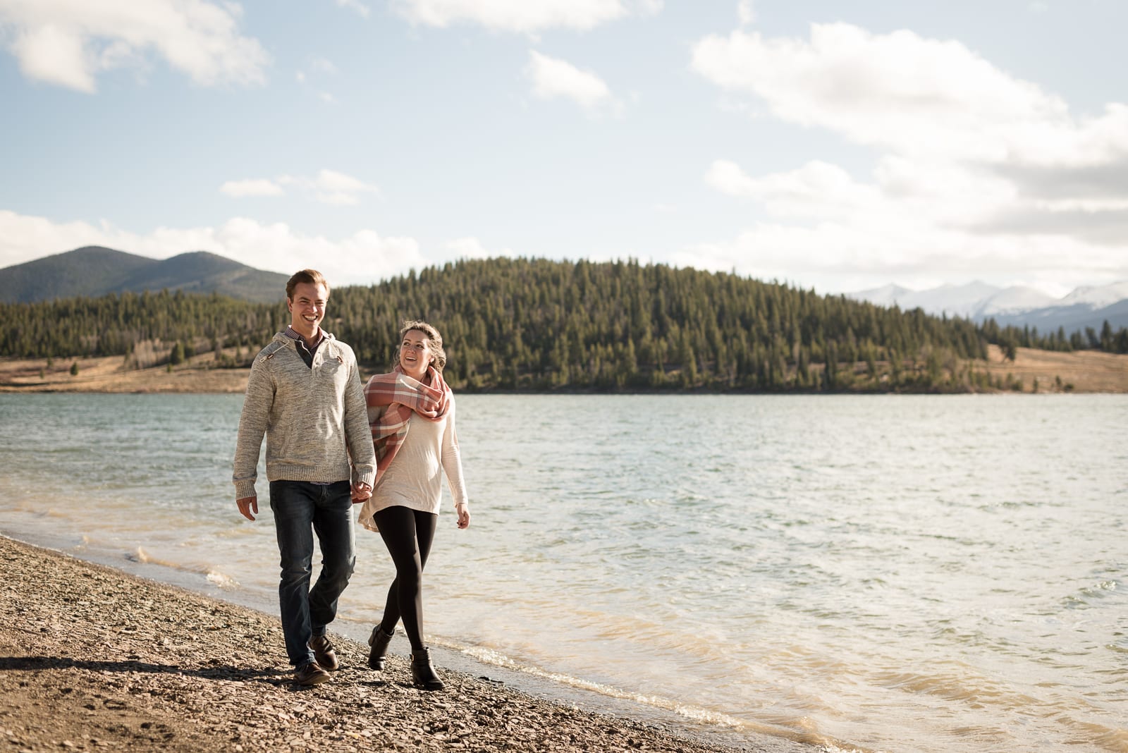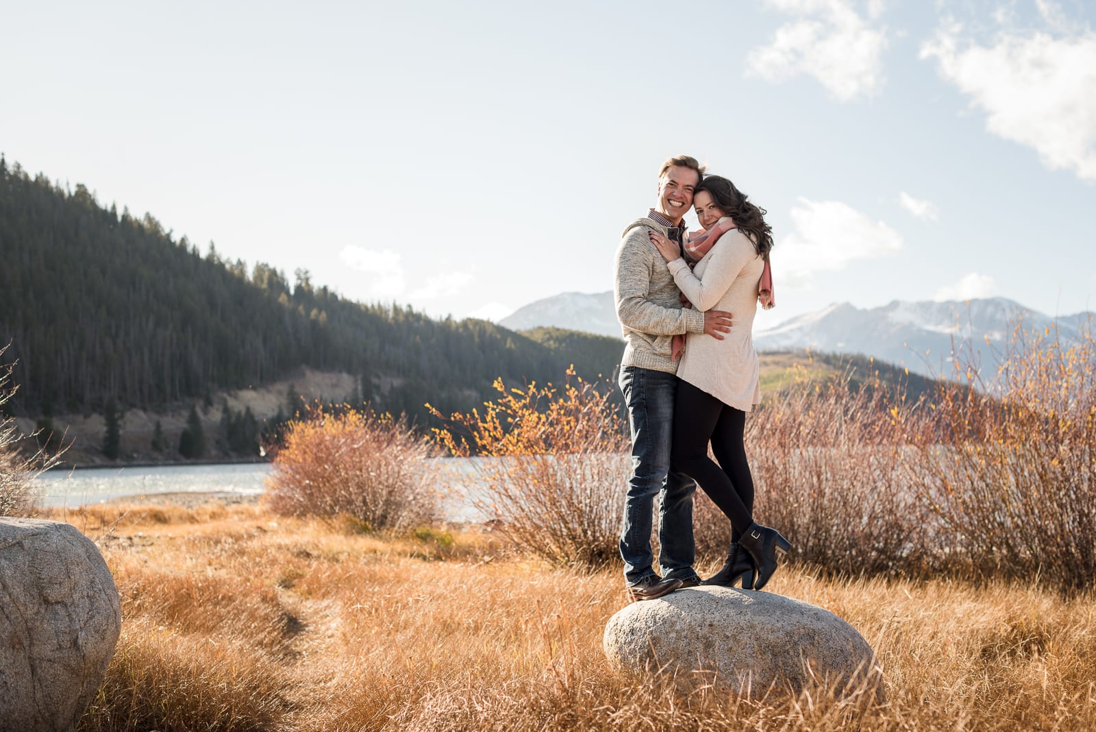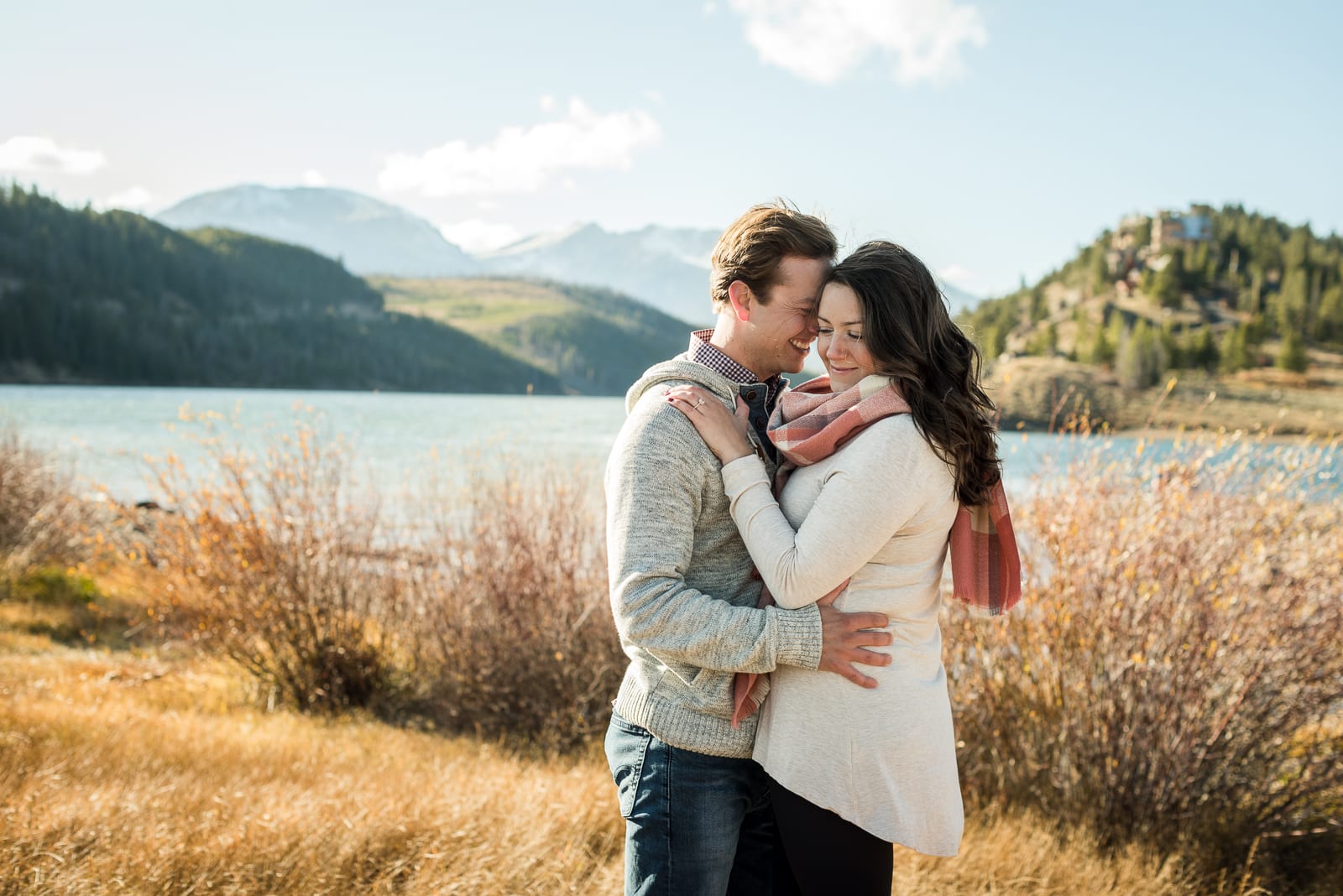 While their wedding will encapsulate Adeline’s Massachusetts background on a beach, these photos perfectly depict Josh’s Colorado roots. The suave colors of Adeline’s sweater and scarf worked well with the fall landscape. The October weather did not fail to remind us of Colorado’s frequent sunny forecasts. And as if the shoot couldn’t get any more splendid, these two beamed with smiles the whole time. With Colorado scenery and a love this genuine, how could you not?
