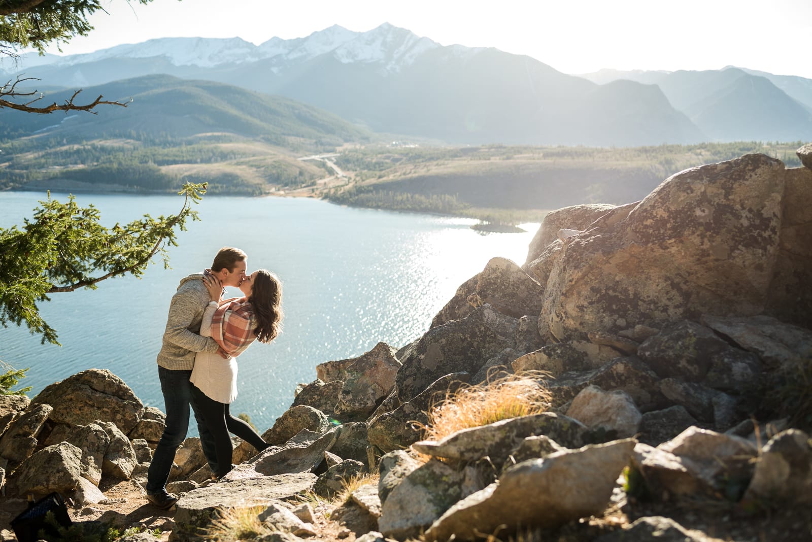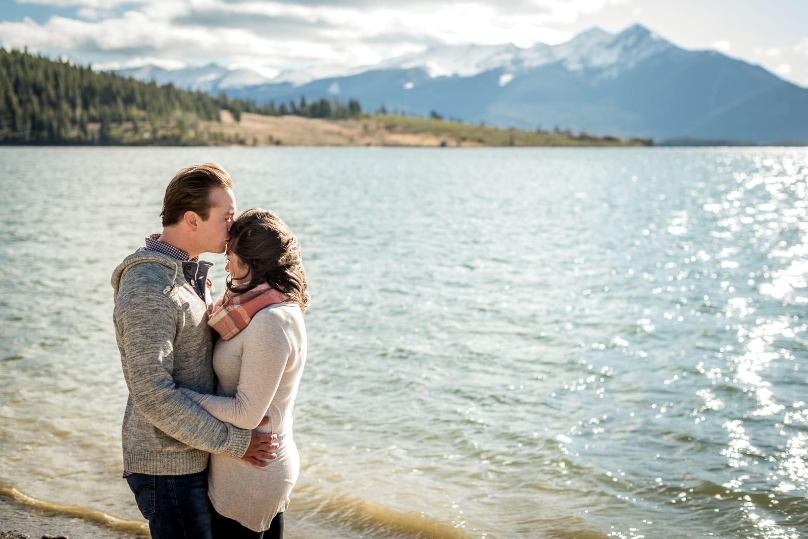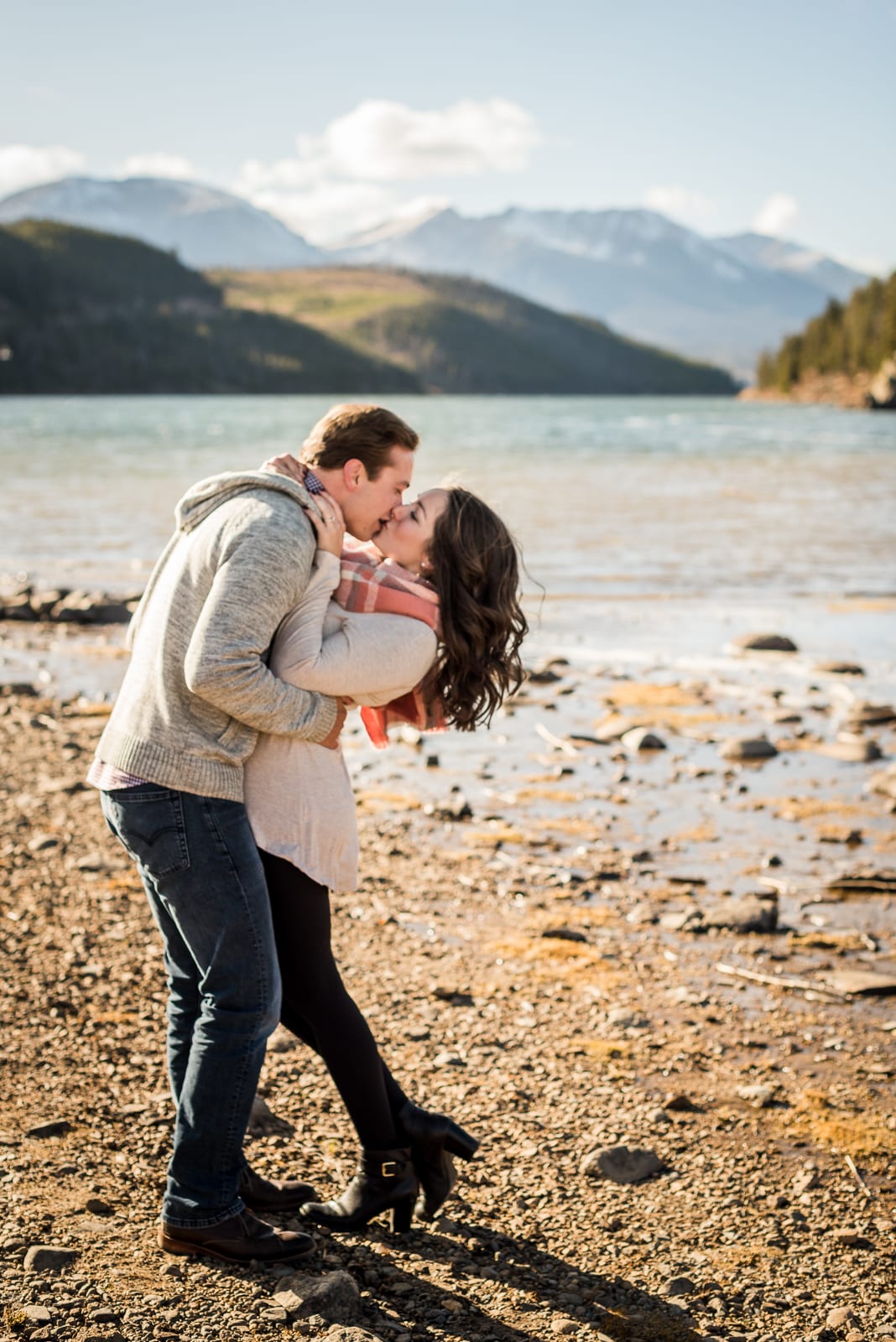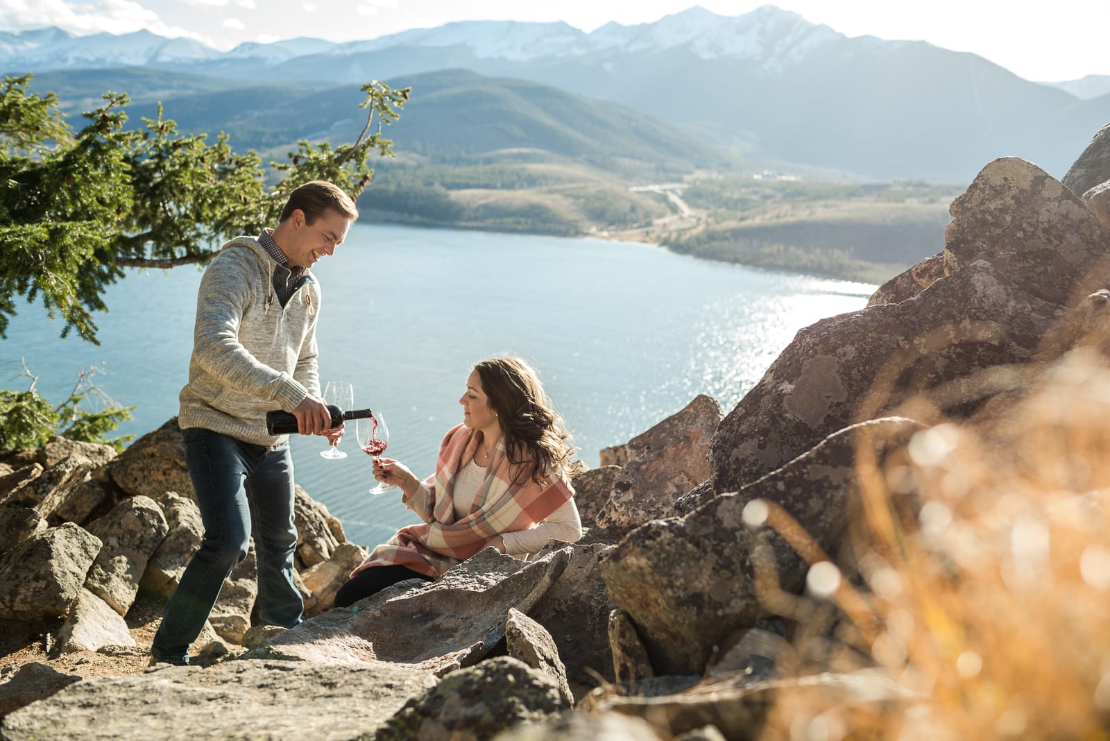We’ve never seen engagement photos quite this blissfully sweet. Adeline and Josh celebrated their engagement among the the Colorado Rockies and a glistening Lake Dillon, and we have never swooned more. The couple was completely charming, silly and so playful. In every shot they gushed with love and celebrated with passion (and wine!) — and we were thrilled to be a part of this Lake Dillon engagement!