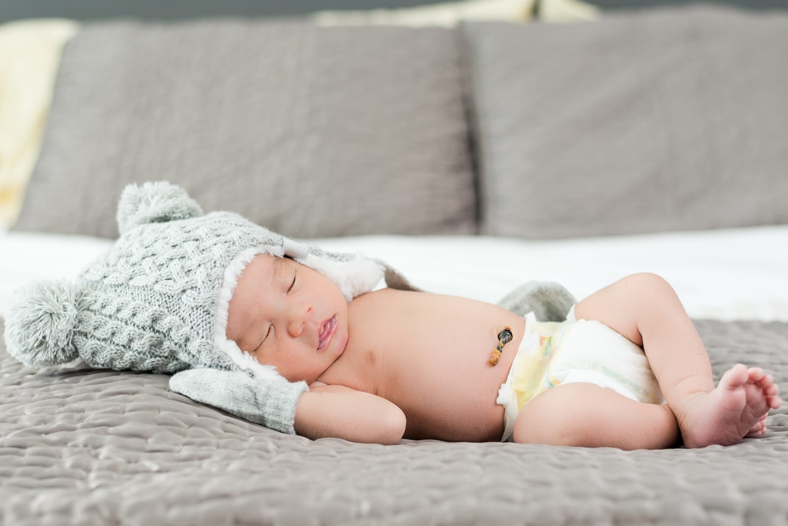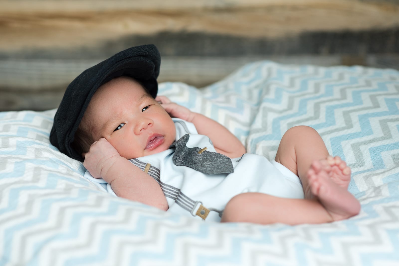 But just when we thought this newborn session couldn’t get any more picture-perfect, the couple whipped out the most charming newborn outfits we’d ever seen. We’re not kidding — we’re talking a knit hat and glove set and a dapper little onesie with — wait for it — a miniature tie! Clearly this kid is destined to be both easygoing and incredibly stylish!