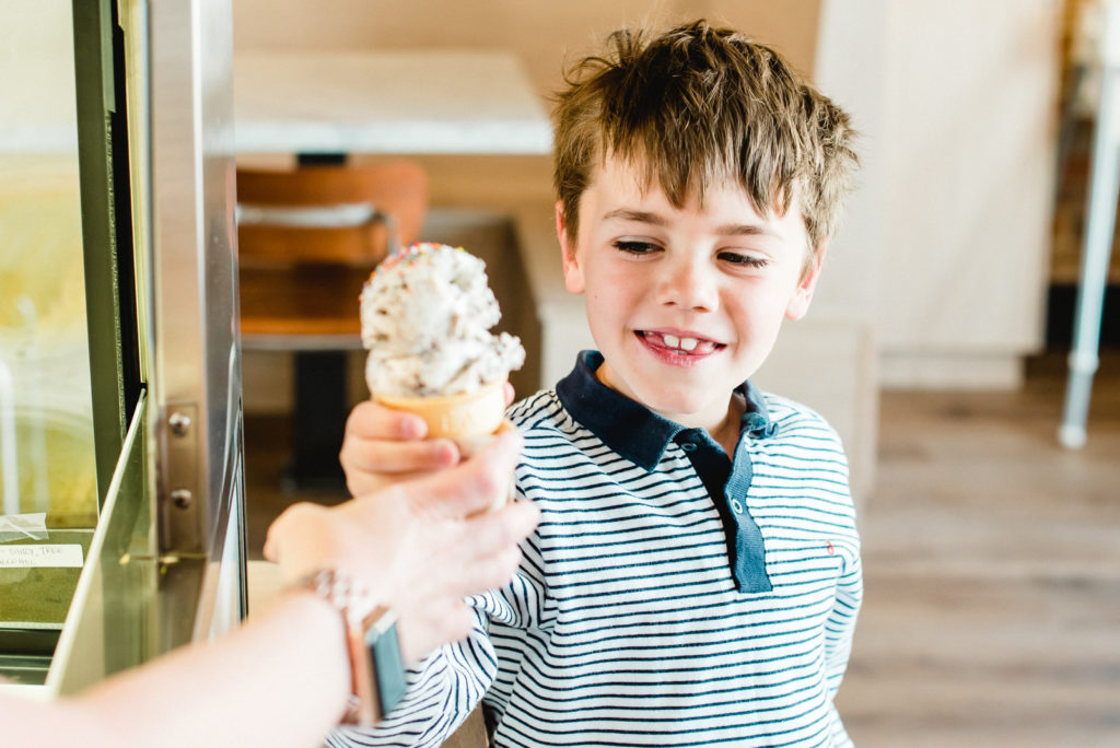 Product Photography | Girl smiling wildly as she scoops ice cream | High Point Creamery, Denver, Colorado