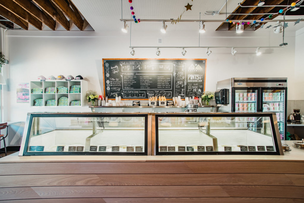 To start off this product shoot, we went to their storefront. Located in the Highland area of Colorado, we got some fun photos of the exterior, and the packaging for the to-go pints! (psst… a perfect idea for a socially distanced summer hangout!). How great is that striped awning and ice-cream cone neon sign? We fell in love their whole aesthetic! We always enjoy working with small businesses because it gives us a chance to help them market their uniqueness. Product sessions like this one can really emphasize the vibe and personality of your brand/items and help you reach a new audience!