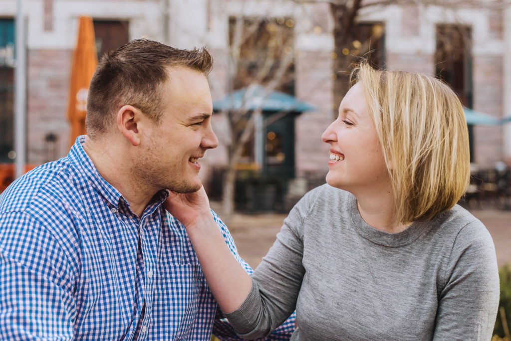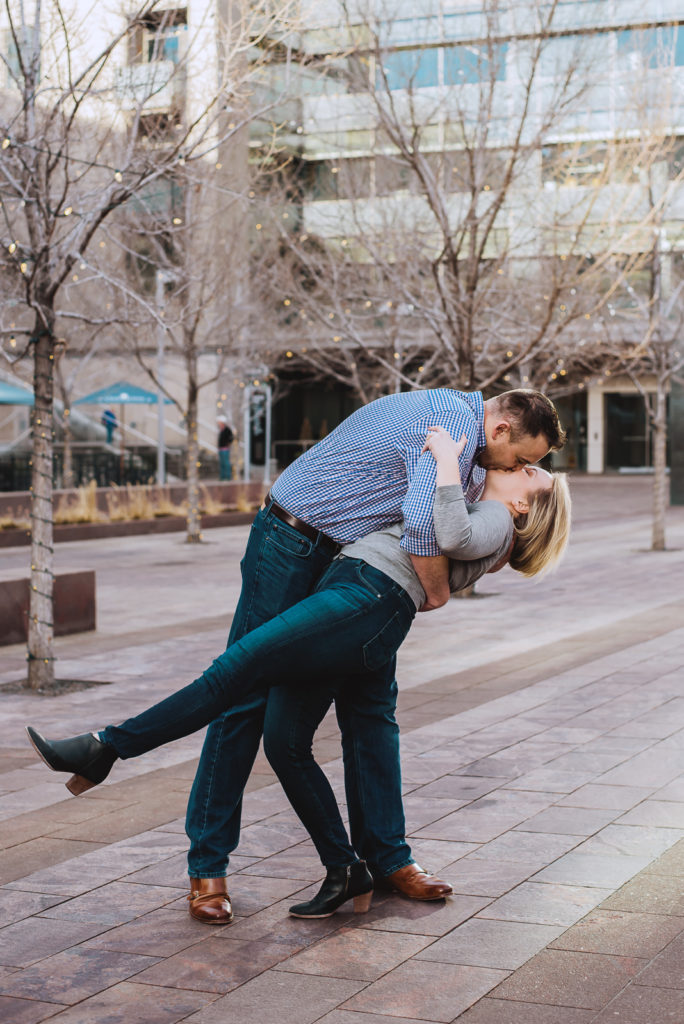 Janelle and Ben are getting married, yay! We love getting to know our couples during their photoshoot, so of course, we had to ask more about their romantic life! They plan to tie the know in the spring in beautiful Canada! They met on a dating app called Hinge. On their first date, they met for drinks at Wine Bare in LoHi. First impressions really do stick! With easy and comfortable conversation and mutual attraction, they were both in! Take a deeper look inside their intimate engagement at Denver Union Station.