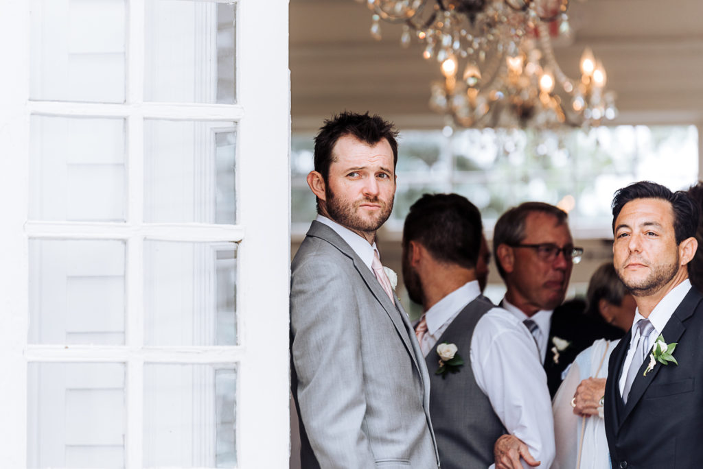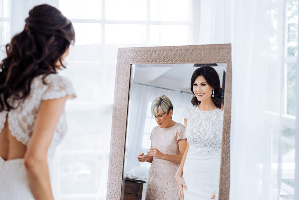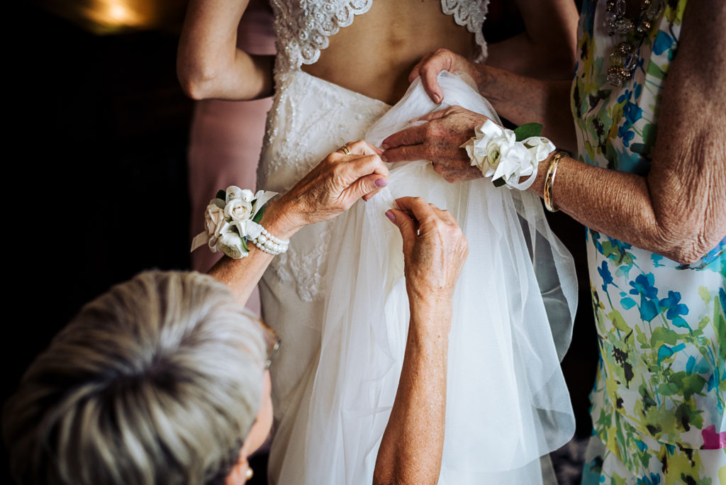 Ann looks absolutely fabulous in her lace dominant, perfectly fitted white wedding dress. She looked so beautiful it was hard to take your eyes off her! But why stop looking? Let her softly sweet and elegant look soak in. After-all, its her day to shine! Additionally, with Ann’s hair and make-up having been perfected by ‘Fluff;’ she had no worries that she wouldn’t be putting her best face forward! Her mother and grandmothers didn’t miss a beat in the dressing room. They did all they could to help make sure Ann looked and felt her best for her big moment. Subsequently, Ann can be seen feeling her best when she shows off her gorgeous, radiantly white smile just before embarking on the most significant walk of her life!