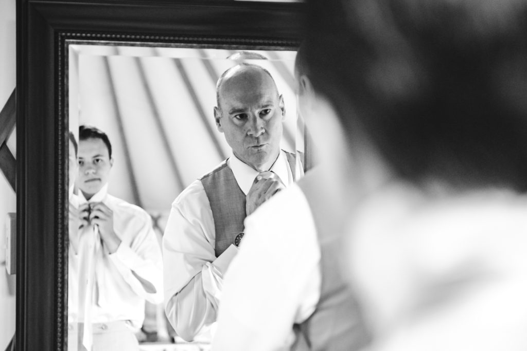 As Todd adjusts his tie to match his stylish vest, Anna eagerly slips on her long, stunning strapless white dress. At this very moment, they can empathize with each-other’s feelings of elation. Anna & Todd are both excited to be spending the rest of their lives together and cannot wait for the processional.
