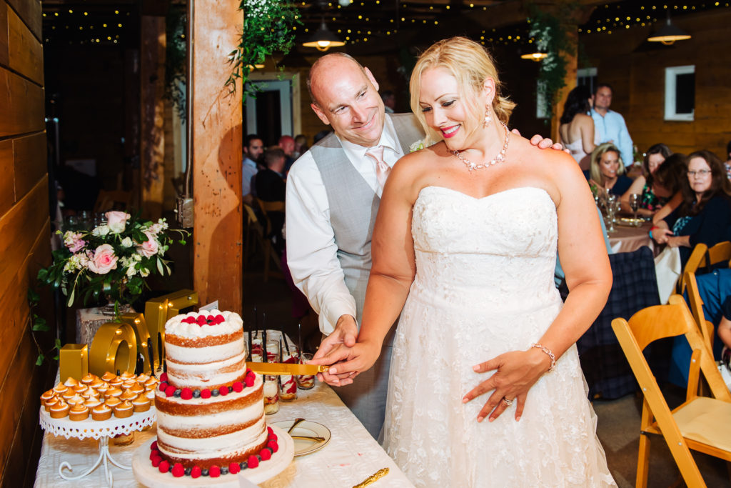 Catered by Biscuits and Berries, the baked goods and desserts were both scrumptious to look at and delicious to taste. Crowd-pleasing candy apples are seen bringing smiles to the faces of Anna, Todd and their families. And look how elegantly dashing Anna looks in her bright white dress! She has a smile that lights up the dance floor! The ‘home-made’ tasting goods coupled with the exuberant flowers from Newberry Brothers, worked together to add sparks to an already amorous atmosphere. Now its time to play in the garden so to speak!