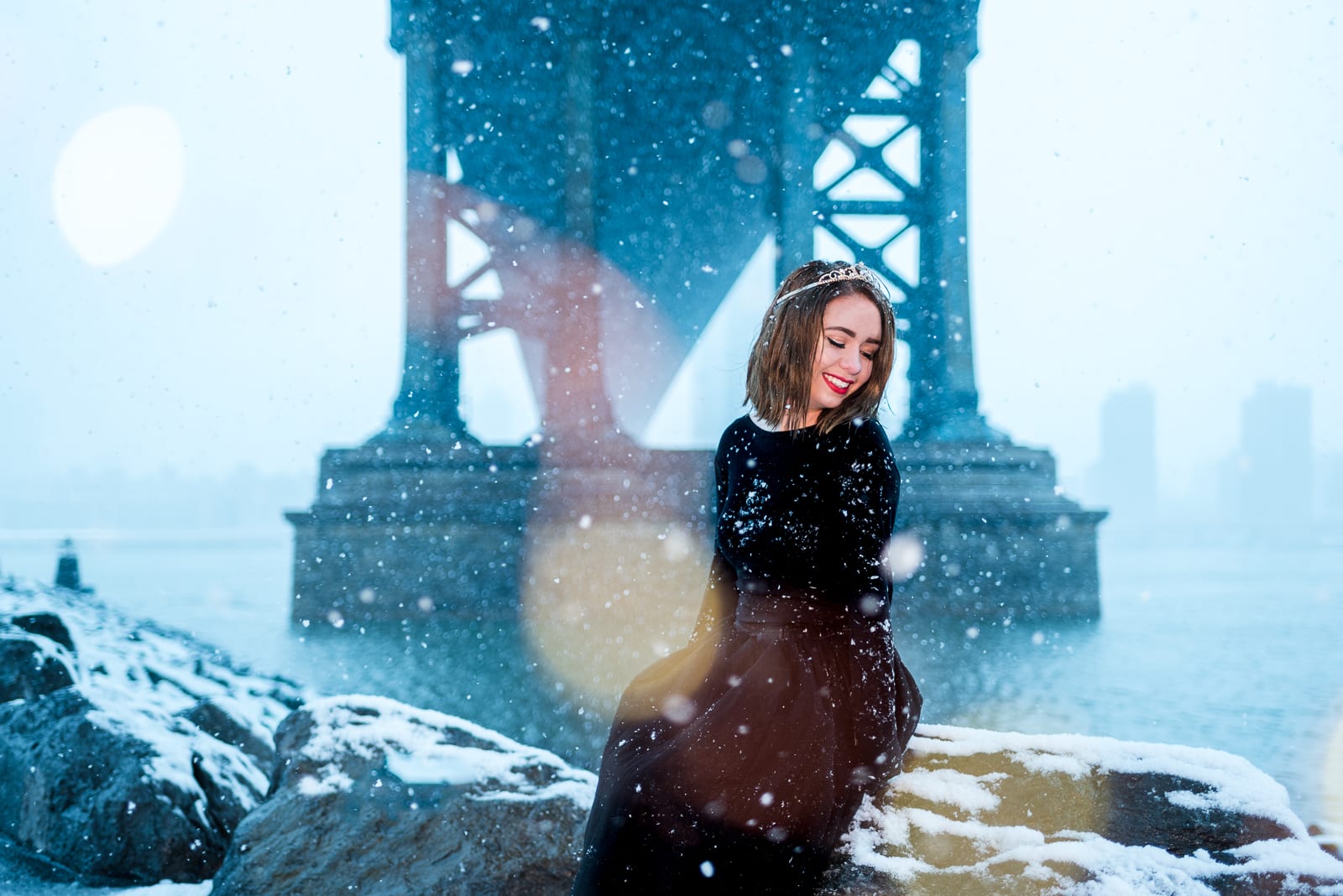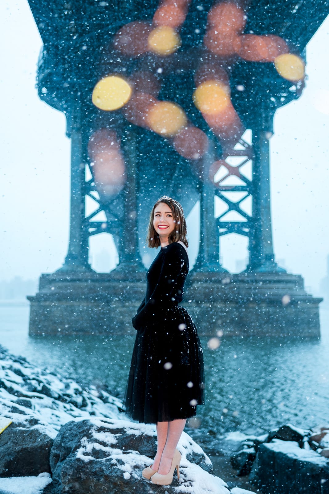 New York is an amazing setting for any photo session. The bright lights of the city are beyond comparison! And we were beyond excited to be invited to do Annie’s photo’s in New York! The lights sparkled against the brisk winter weather. The east coast snow may be an inconvenience to some, but it was the perfect finishing touch to make Annie’s photos magical.