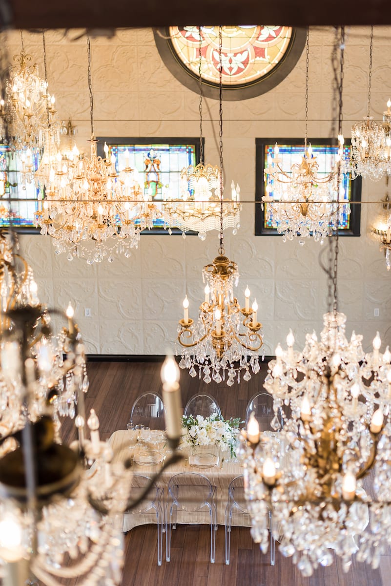 “The beautifully hand-crafted chandeliers highlight the entire space.” said de Zayas. “This is what inspired me in creating this grand, fairytale-like styled shoot.”