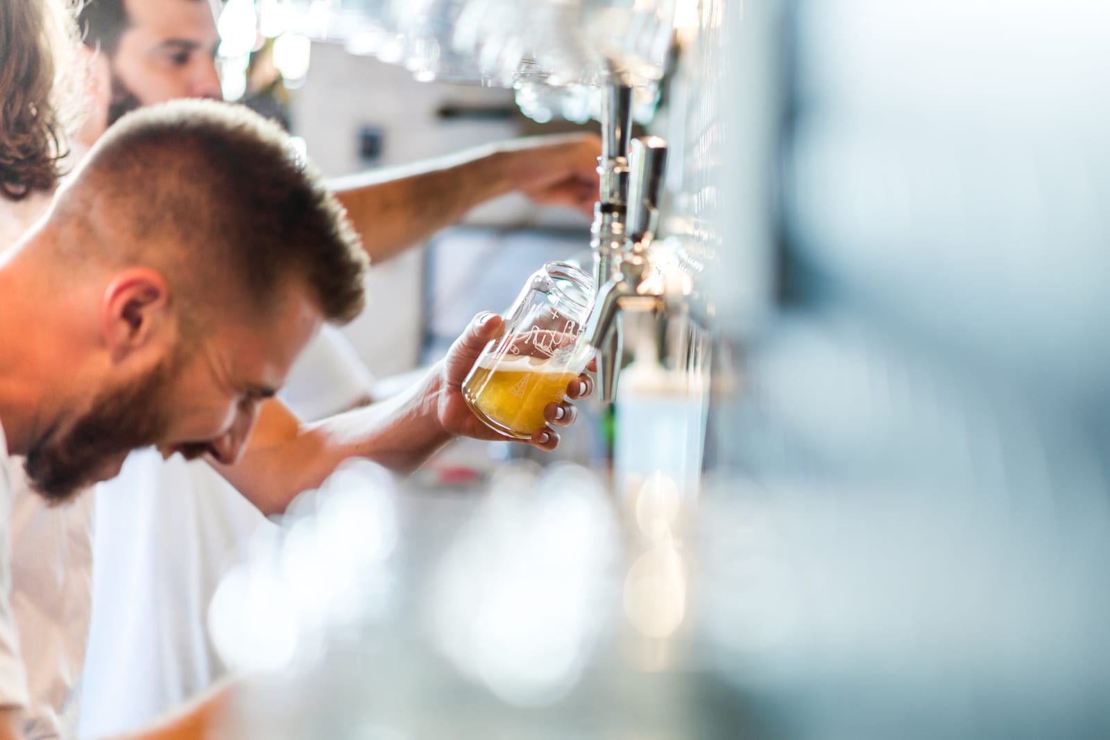 The couple wanted a fun setting for their wedding day. They found exactly that at their favorite bar, Our Mutual Friend Brewing Company! Located in the RiNo neighborhood of Denver, there was no better backdrop for this artistic couple. The colorful facade of the building couldn’t have been better for wedding photos! They also hung colored fabric decorations from the ceiling. As the sun began to set their decorations lit up to add a punch of color to the atmosphere, a fantastic expression of their fun-loving, artsy spirits!
