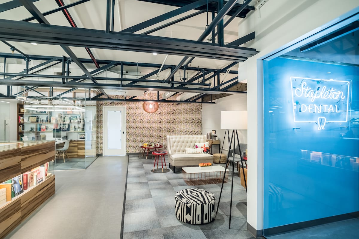 Located in the new Stanley Marketplace is Stapelton Dental. In bright blue neon lights reads, “Stapleton Dental”, it is pretty hard to miss. A super friendly staff greets you as soon as you enter the doors of Stapleton Dental. Surely, you will ask yourself, “am I in the right place to get my teeth cleaned?” Yes, yes you are! Stapleton Dental has a stand-out atmosphere that takes away that scary medical office vibe and turns it into a fun, excellent experience.