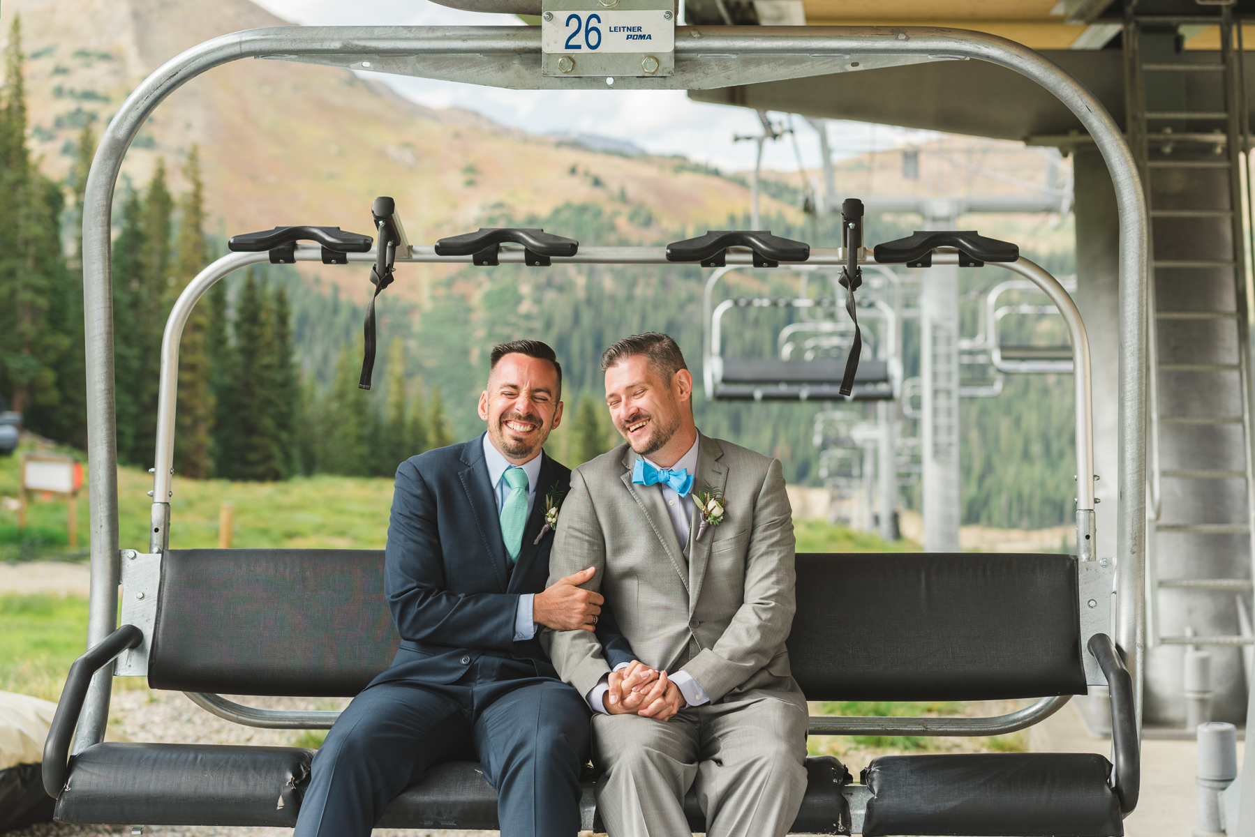 Tucked away 11,550 feet up in the Rocky Mountains, Michael and Aaron said “I Do” forever. Situated at the peak of Arapahoe Basin and reachable only by chairlift, the Black Mountain Express, in particular, was the most beautiful Black Mountain Lodge wedding. The two grooms held their wedding on the lodge’s spacious deck under the summer sun, surrounded by towering mountain peaks.