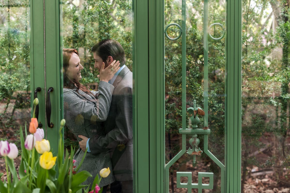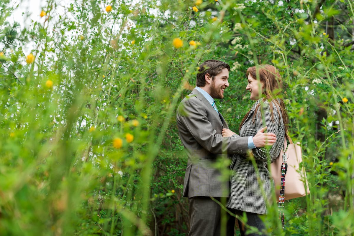 The green foliage was aplenty, as were excited giggles and unabashed simpers! Some of out favorite pictures were of the couple outside of the green, glass building. Not to mention, the greenery around them seemed extra green when contrasted with their chic gray outfits. The way Michael looks at Holly made us swoon! Plus, the excitement from Holly kept the engagement photo session incredibly fun!