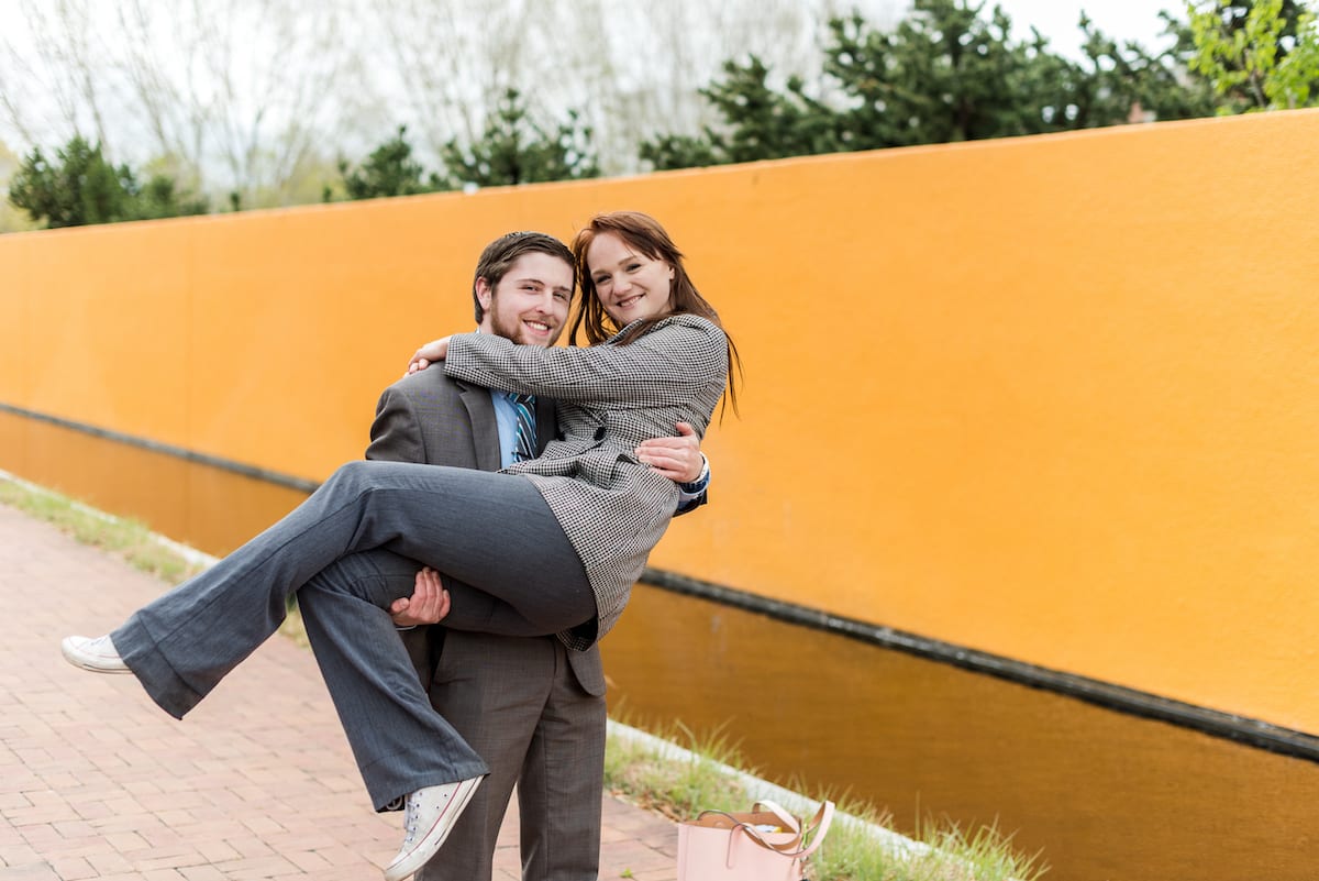 The flowers added a nice pop of color, but they paled in comparison to Michael and Holly’s smiles. One of our favorite settings (among many) in Denver’s Botanic Gardens is the Science Pyramid! The inside is full of cool interactive technology, teaching its users all about the steppe regions. However, it also provides a perfect backdrop for a newly engaged couple!