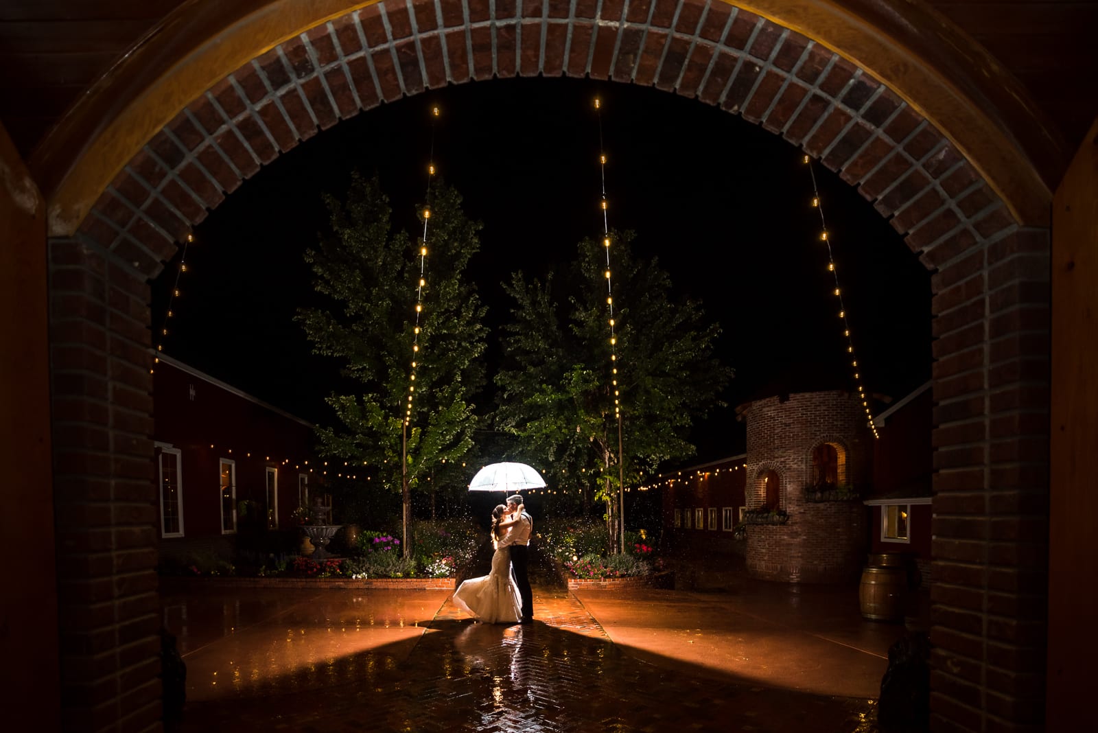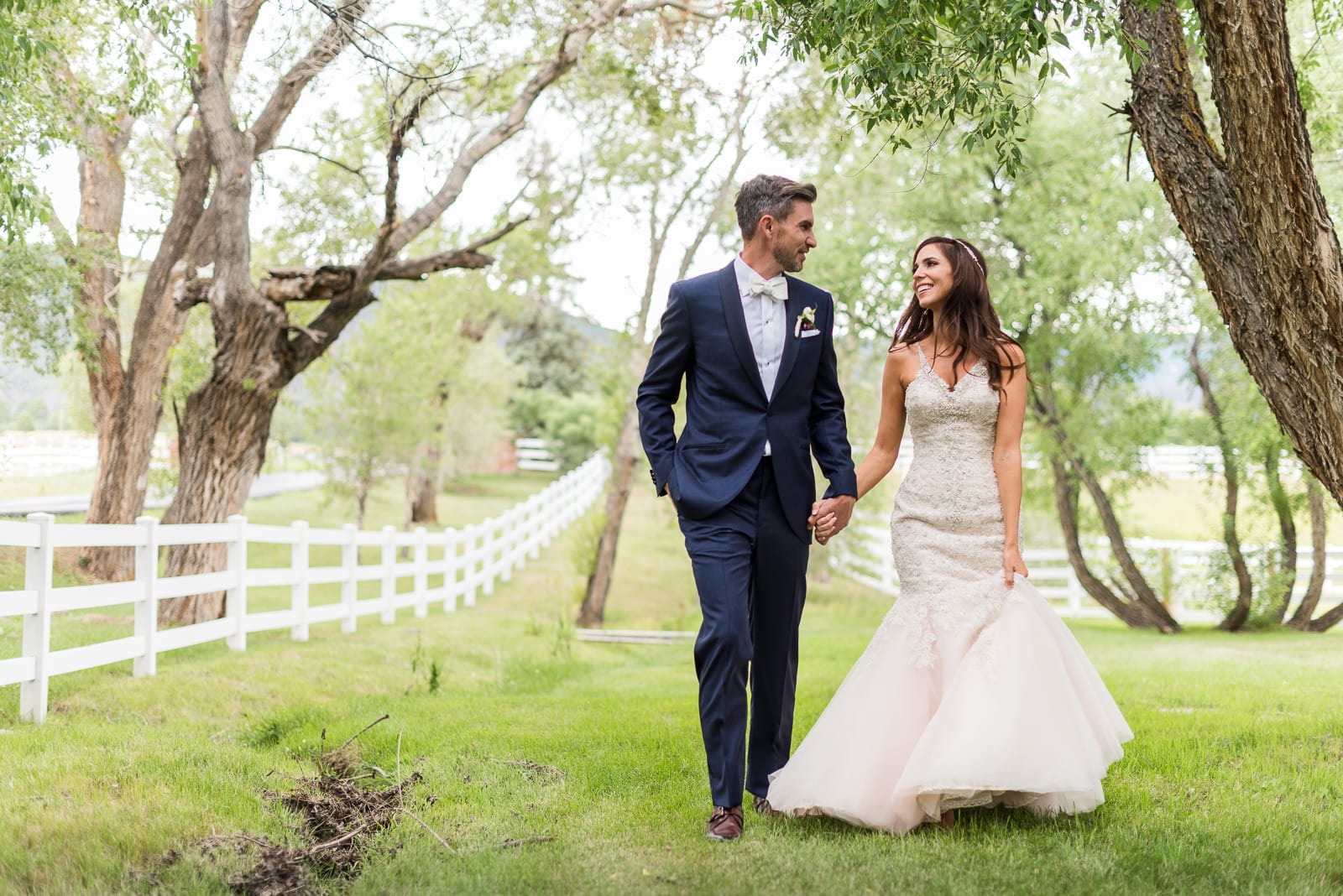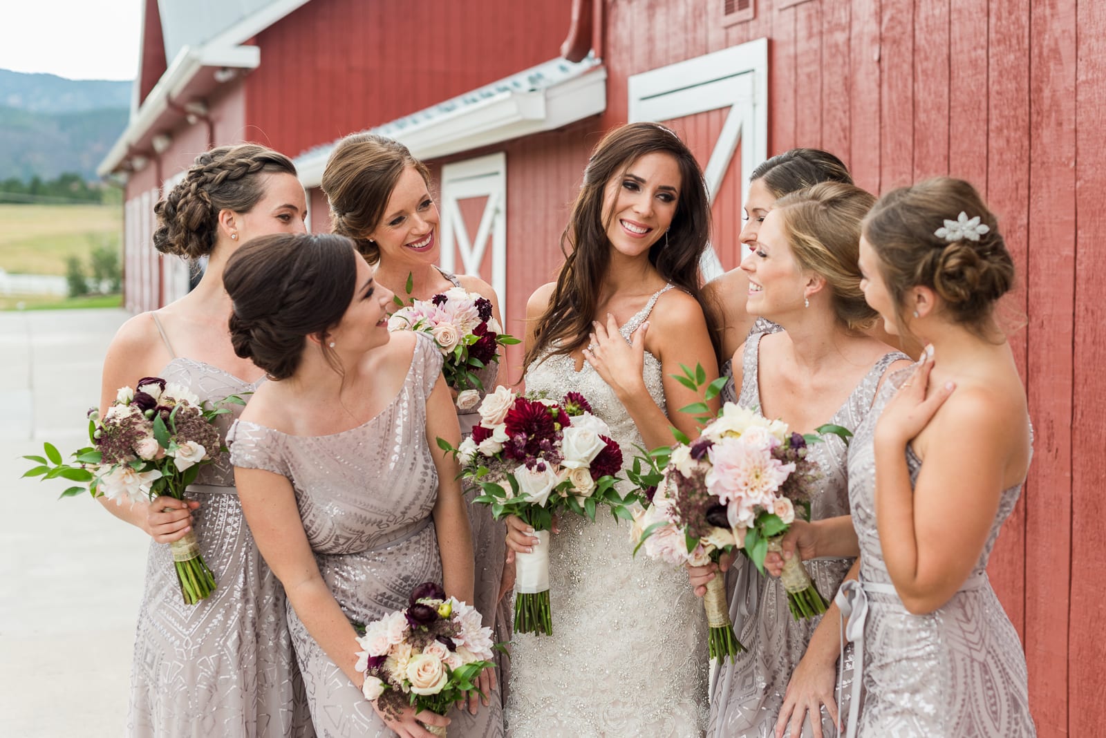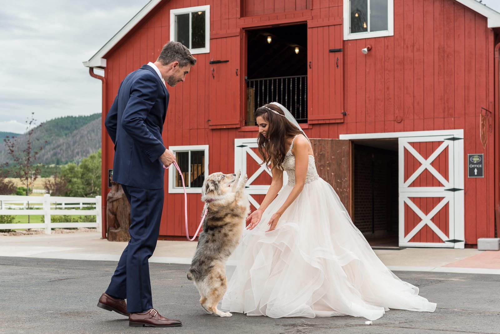 Candace & Xander’s elegant wedding took place in July at the Crooked Willow Farms, in Larkspur, Colorado. It was the perfect setting for this couples elegant wedding. Candace looked stunning in her beaded gown and crystal hairpiece. Xander wore a dark blue suit and a cream bow tie. The couple truly looked like royalty. With lush, rolling, green grasses, a beautiful red barn, and a courtyard filled with flowers in full bloom, walking into their wedding was like stepping into a fairytale. Despite the light rain showers, the couple couldn’t have had a more picturesque wedding. Surrounded by friends, family, and their adorable dog, Candace & Xander said ‘yes’ to forever.