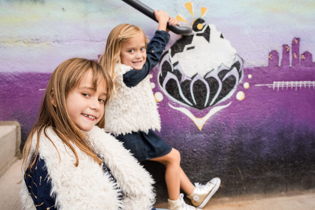 These fabulous sisters are surely the hippest kids on the block. Not only did they wear fur vests, they had boots, gold Chucks, sassy bangs, and silly faces to boot. Confidence is anything, but scant with these two. Mom and Dad took some adorable shots together, too, and looked just as effortlessly composed and cool. We were able to use over a dozen unique murals for their backgrounds, and given the artistic (and seriously awesome) nature of RiNo, they even found a vintage scooter to pose with! They really made the most of their session and surroundings, and it made for one of the most stylish family sessions we can think of!