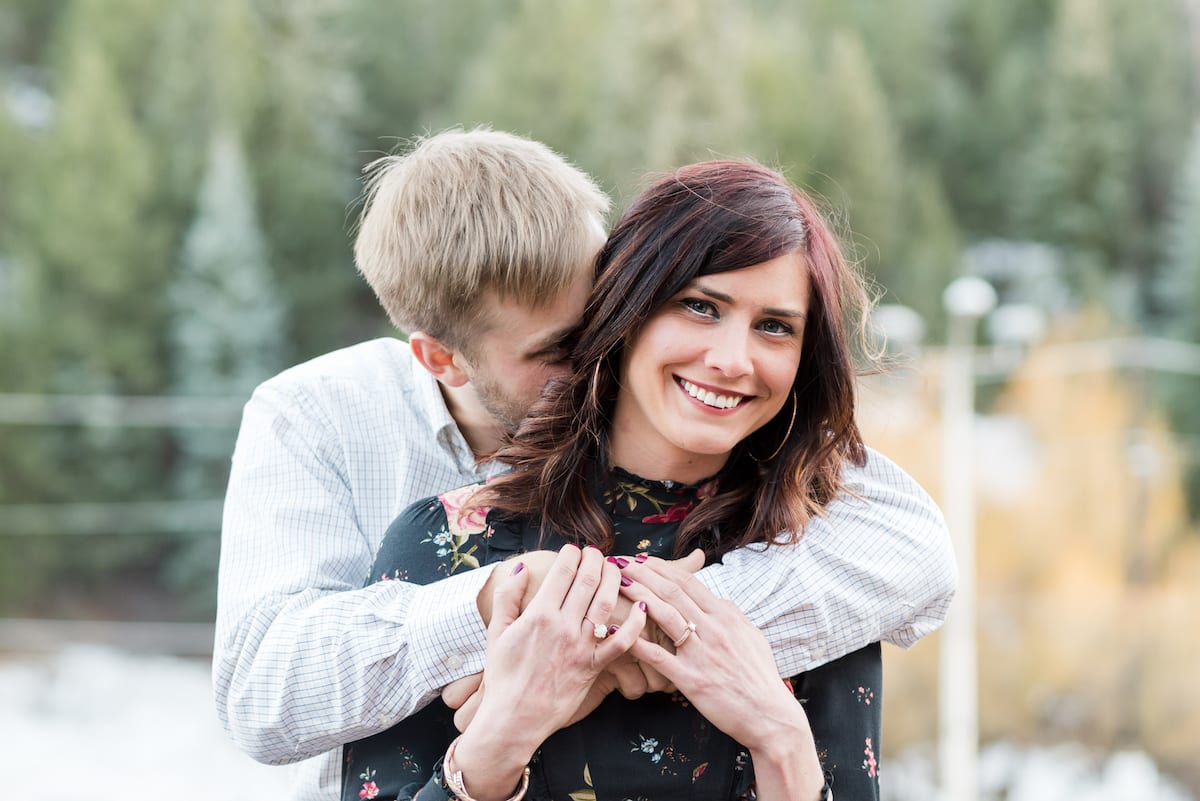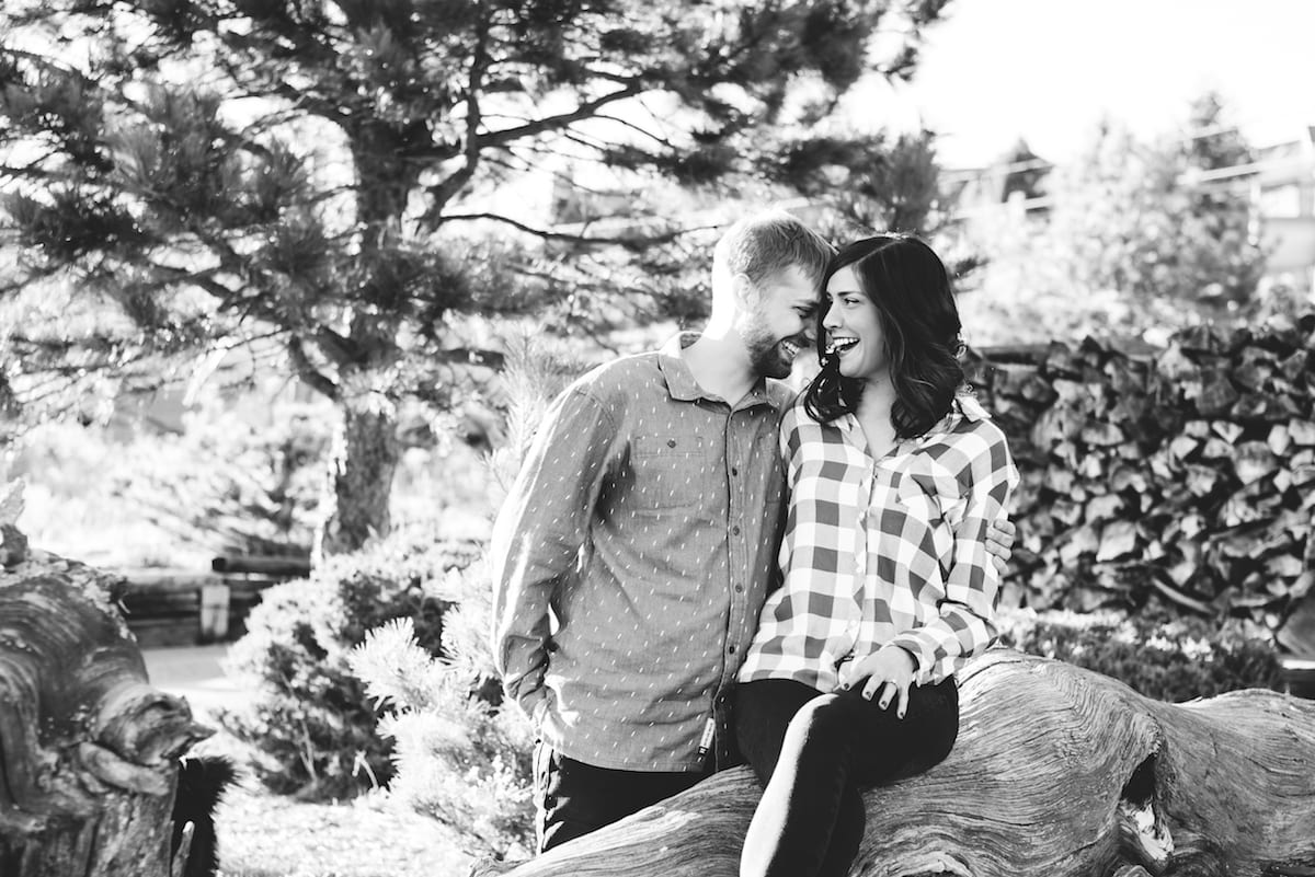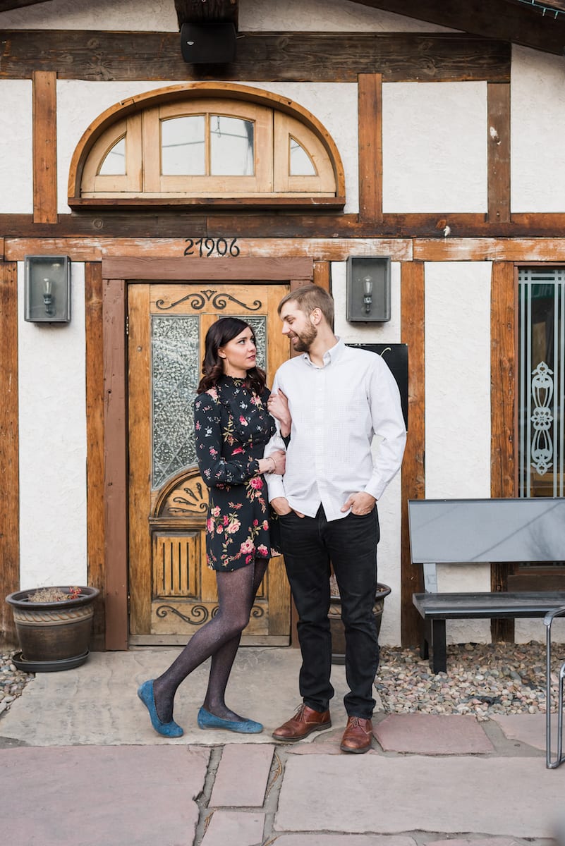 Located at an elevation of roughly 7,200 feet, Evergreen is a quaint mountain town just outside of Denver. An oasis for dog lovers, we couldn’t imagine a better place to call home for Traci and Andrew! We spent the first part of the lovebird’s session by the coziest spot in the house: the fireplace. Snuggling up with their pup, the two looked comfortable and casual in jeans and blue accented button downs- but we all know their pup stole the show with a dashing black fur coat.