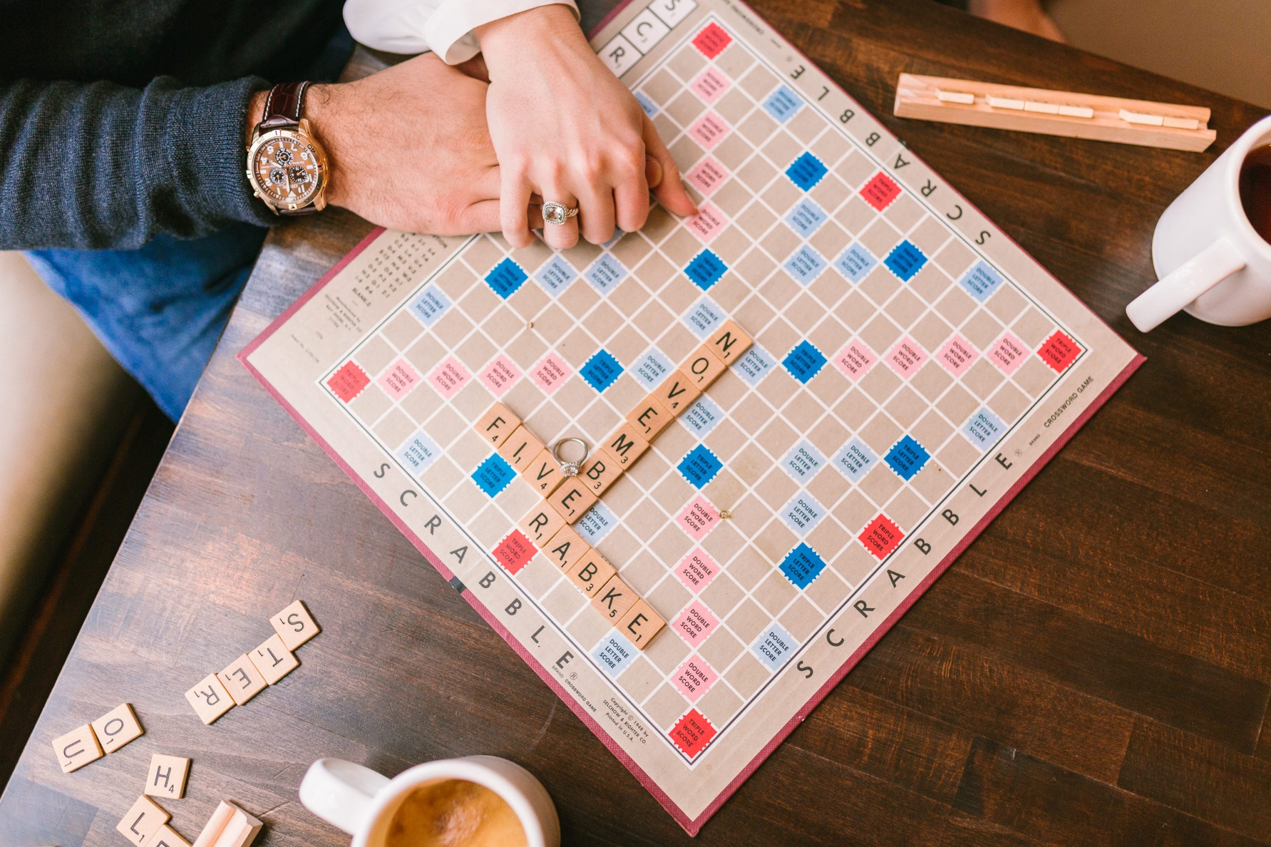 Maybe you consider yourselves wordsmiths? Why not spell out just how the two of you feel about each other with a sweet game of Scrabble! There’s nothing like a little friendly competition, plus your guests will adore the creativity. Don’t limit yourself to just Scrabble, though. Any board game or deck of cards can be used in your photos to create some creative Save the Dates. And of course, photos of the ring on the game board are essential!