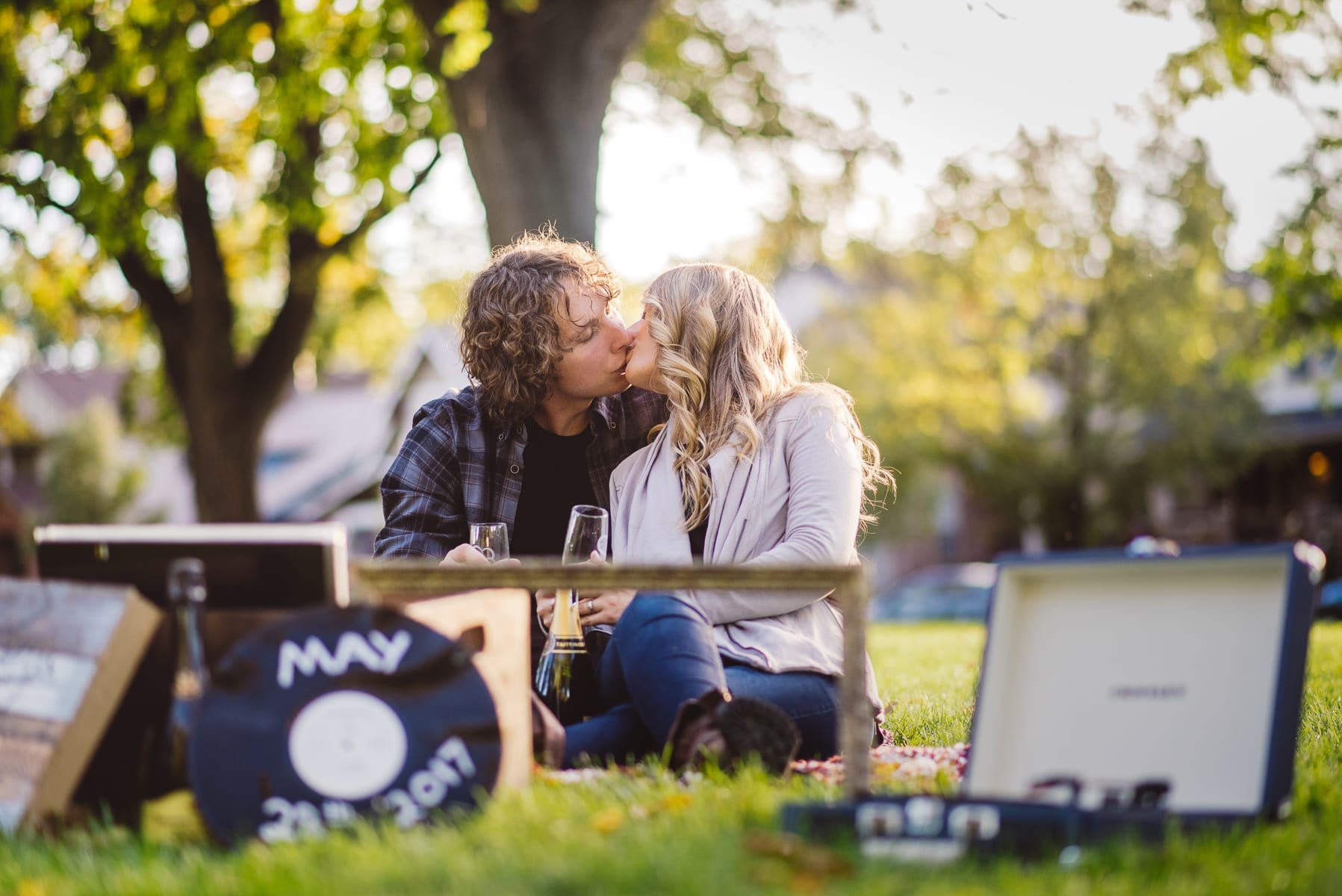 Whether you bring matching mugs, your favorite champagne, or a couple good books, props can make truly creative Save the Dates so much more special. Include t-shirts with your wedding hashtag, signs with a mashup of your names, or a banner announcing your upcoming marriage. Play around with different props to find something sweet and sentimental to add to your Save the Dates. Etsy and Pinterest are always great places to start! But quite addicting.