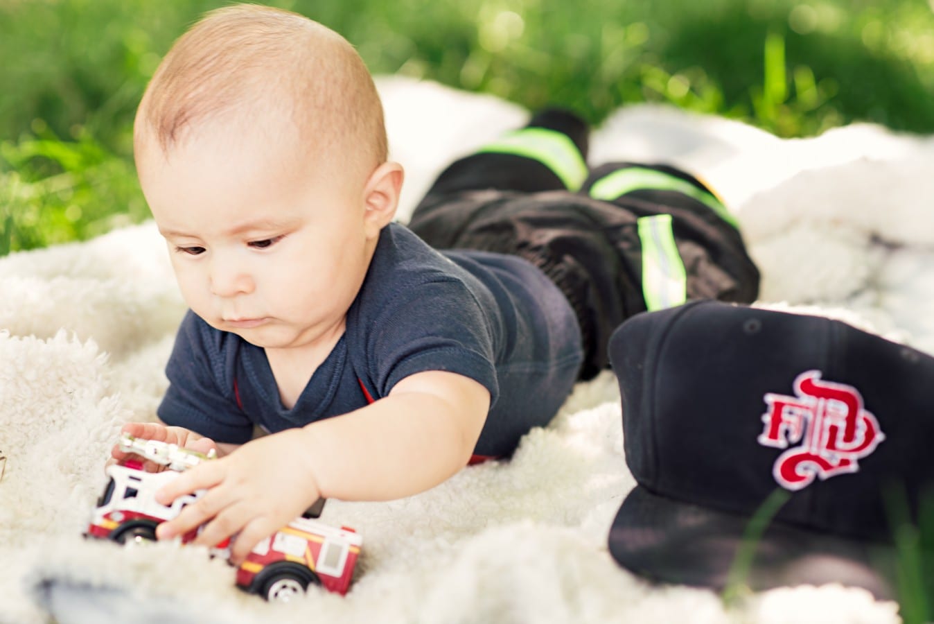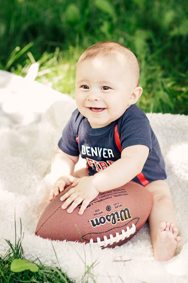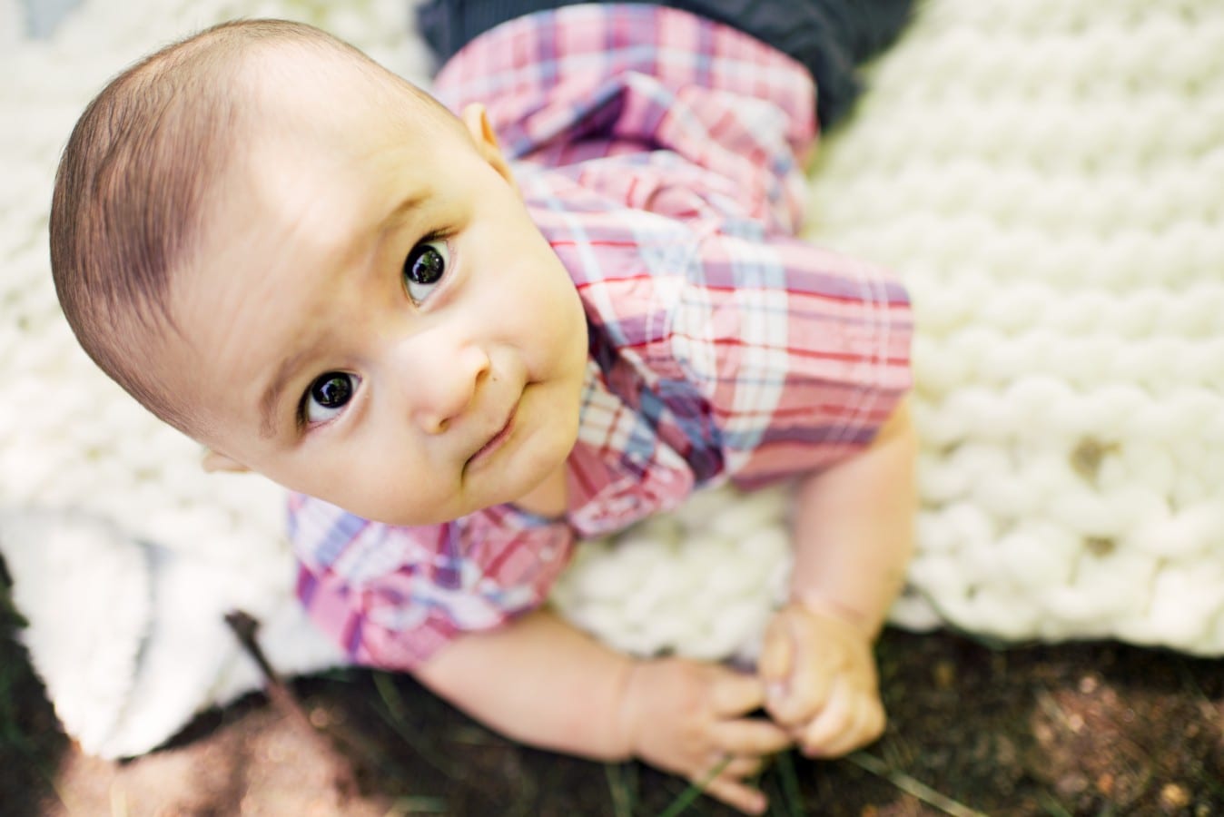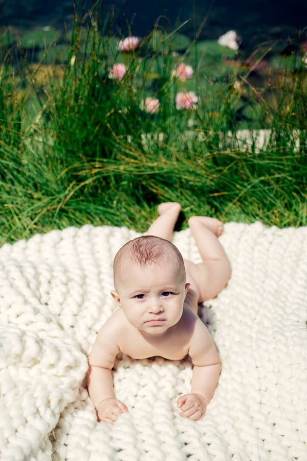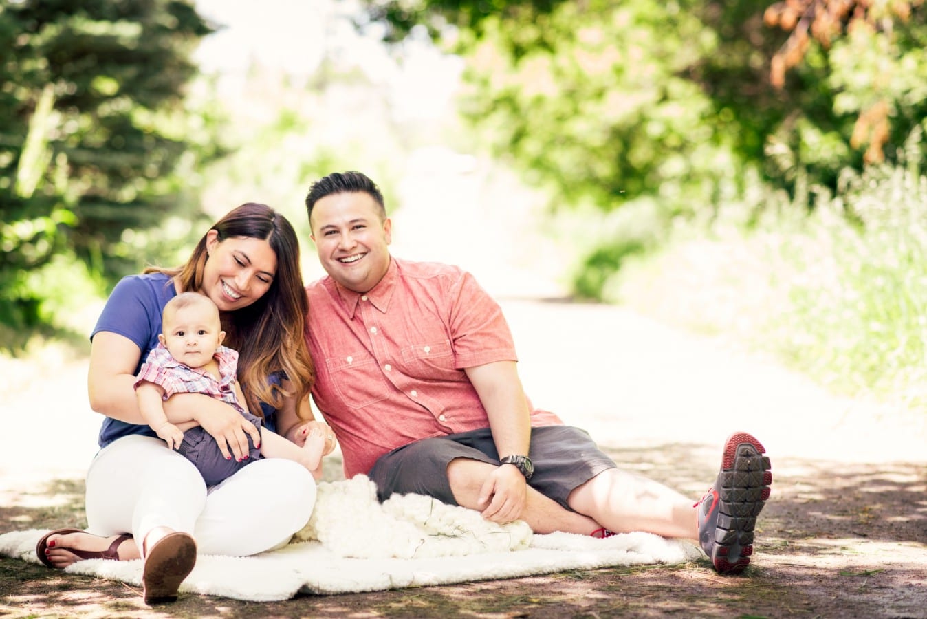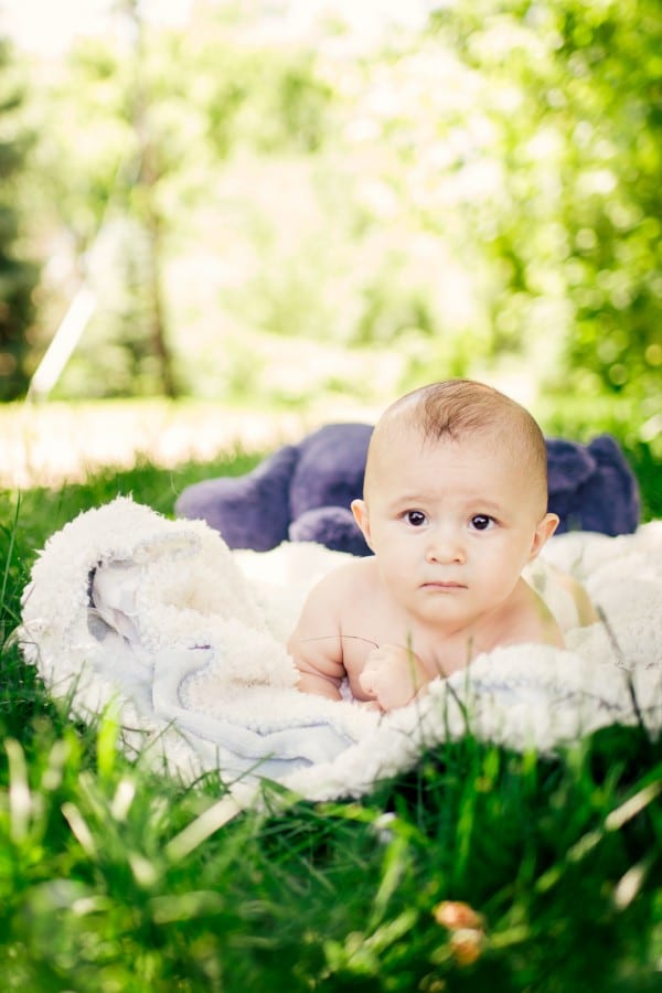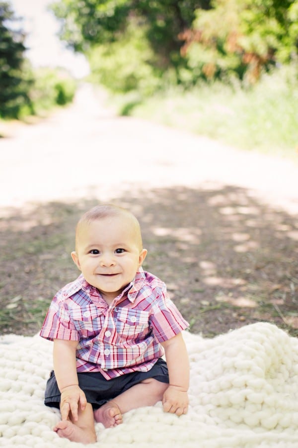 Family photography looks great outdoors, especially when your little one is happy. Make sure to bring a comfortable blanket and some of his or her favorite toys.