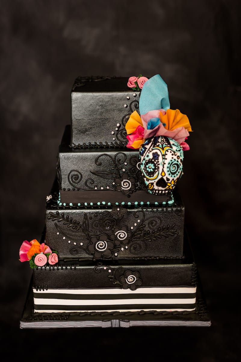 Models Taylor and Nick looked extremely bold and radiant in their gown and tux. Taylor’s makeup was to-die-for. Her calavera (sugar skull) inspired makeup was absolutely fitting for this wedding. After all, calavera, traditionally created with cane sugar, are decorating items used throughout the Day of the Dead holiday.