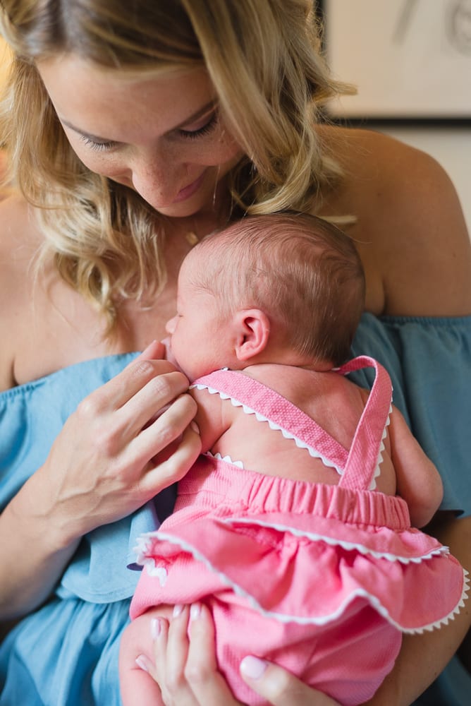 Plus, this cutie slept the whole time, making our jobs so much easier! Keira’s fashion sense is already strong as can been seen with her frilly, pink onesie with a strappy back. And her proud mama also looked stunning in her flowy, blue dress.