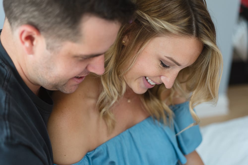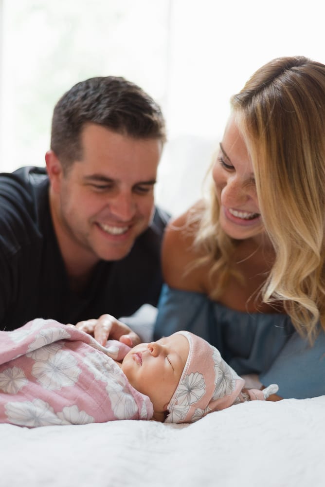 Brittany and Danny welcomed us into their Denver home for some candid newborn photography of their newest addition, Keira James. If you were to close your eyes and picture a comfy and calm nursery, this is most likely what it would look like! The room was bright and open, with cozy, chunky blankets and soft colors.