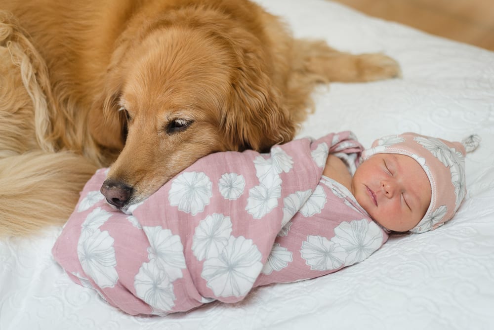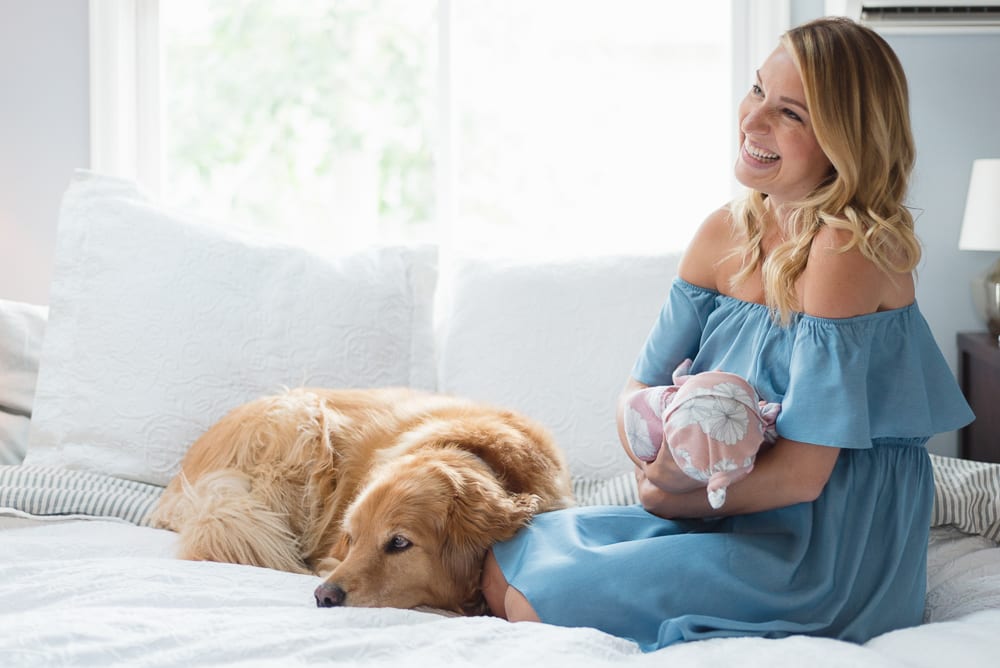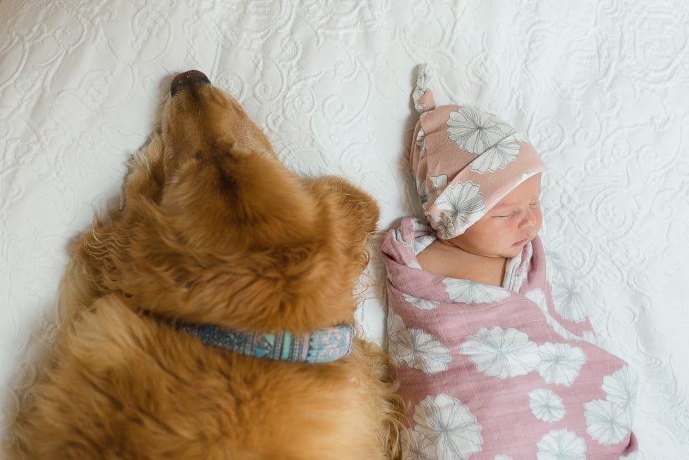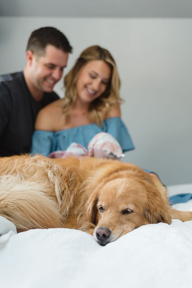 There was so much love in the room! During the entire session, the couple’s golden retriever never left their side! He was even gentle enough to lovingly pose next to the newest friend under his protection. We are sure those two will be inseparable adventure buddies when she starts to walk!