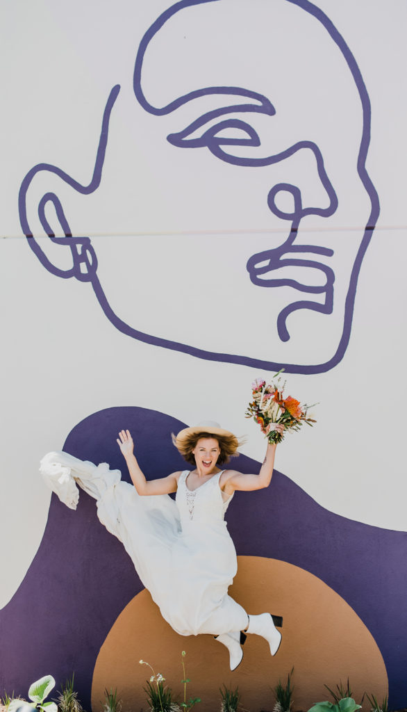 There are so many amazing backdrops that live here at Denver’s new wellness center and venue! Jumping in your wedding dress in front of this RAD mural at Nurture is just one of the many things here at Nurture that sets them apart as a new Denver Venue! Of course all the greenery inside in Nine (the event space) gives us some tropical fun vibes. Nest (the cafe) has this amazing patterned wall, which offers an amazing look to any set up!