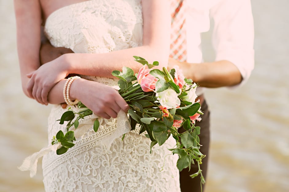 Our surprise guest stars cranked out some truly amazing photos! Talk about unique. After all the fun with our animal friends and a quick wardrobe change, we headed to the lake to capture some romantic shots in the fading light. The little beach served as one last perfect location. The expanse of water, puffy clouds, geometric trees, and rolling scenery helped in beautifully wrapping up a spectacular day. Our drone, Bumblebee, even came out for some awesome aerial shots of the couple! Too dreamy.