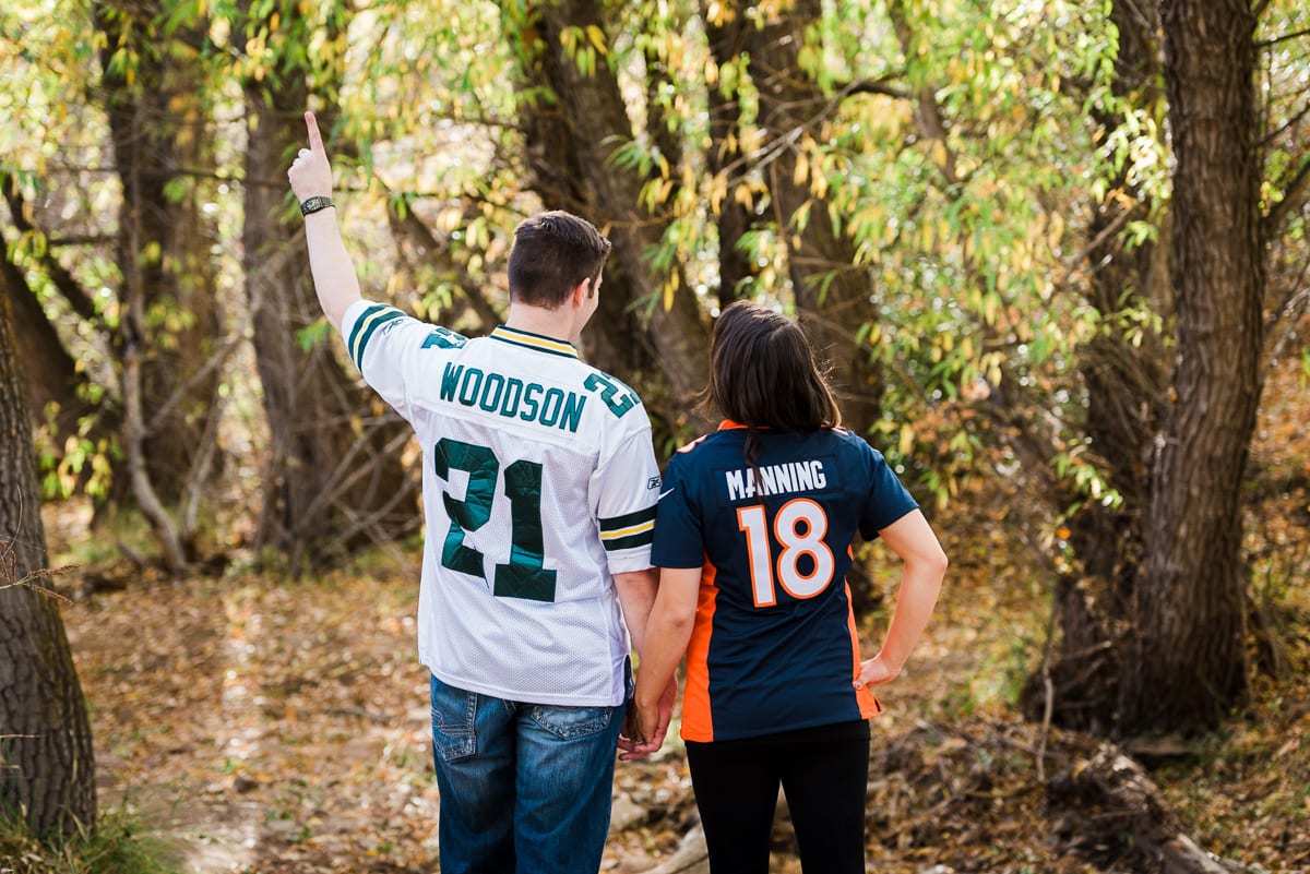 Our favorite outfit, however, were the football jerseys! By rocking their favorite team (the Denver Broncos and the Green Bay Packers), these lovebirds showed us a little look into their football rivalry by sticking their tongues out at each other! Even still, the way John looks at his bride-to-be and the way she smiles so genuinely it’s clear that a little gentle ribbing is only going to bring these two even closer together.