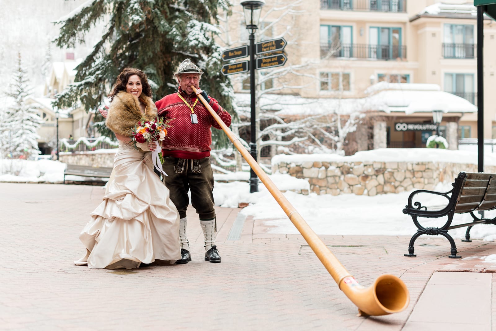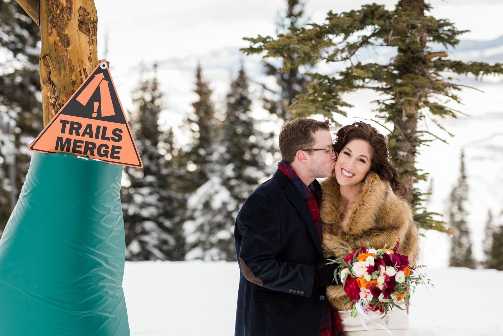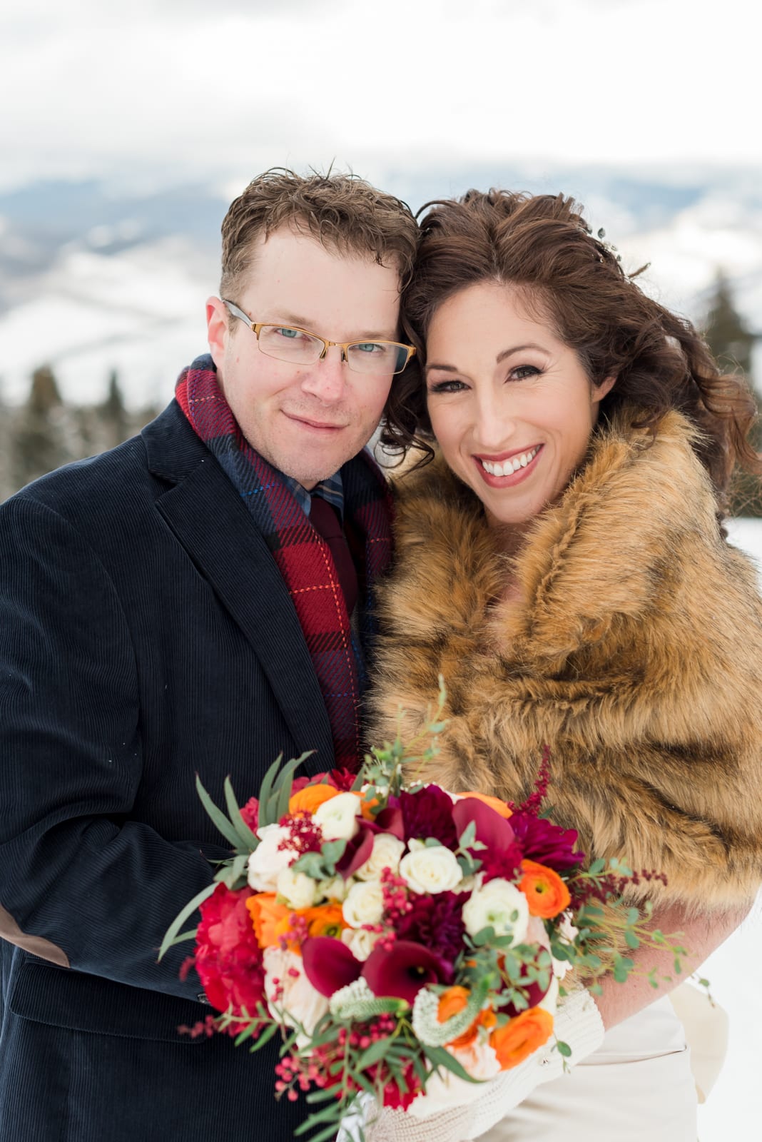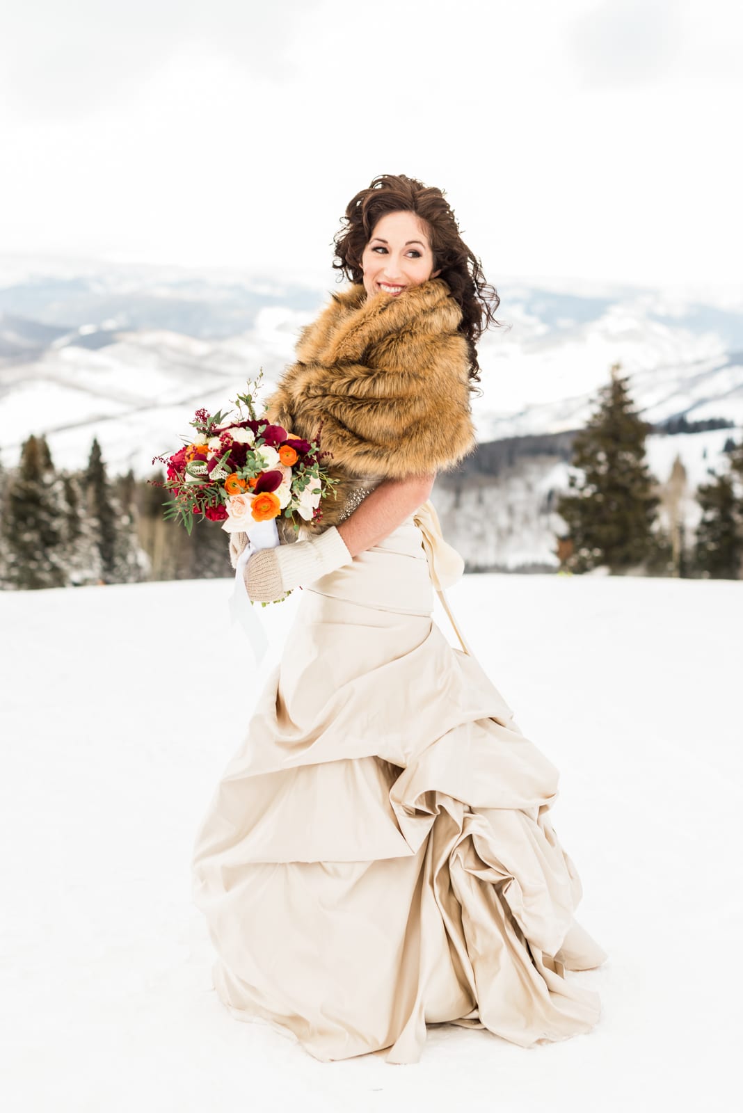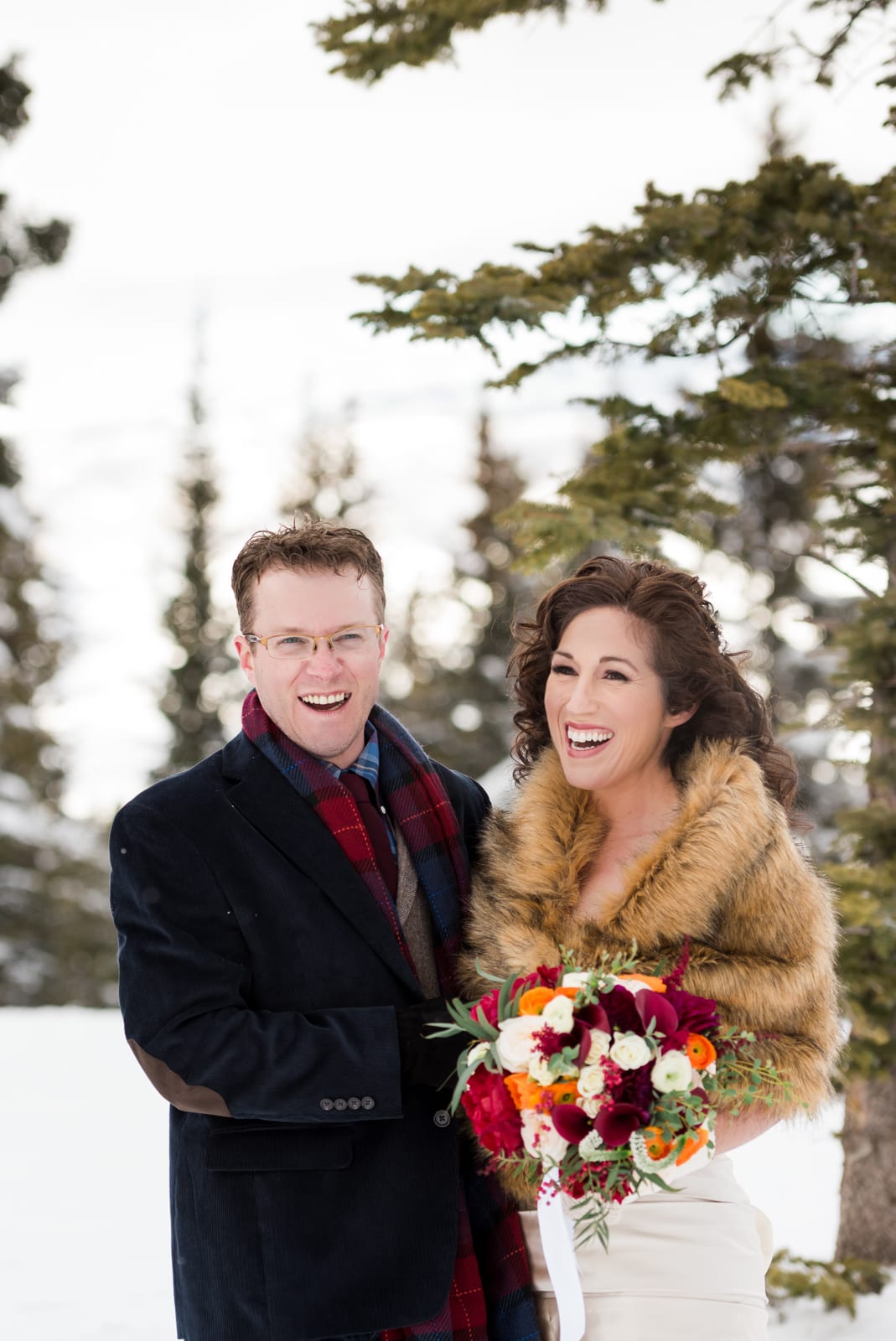 Alana and Erick were willing to venture up one of the many ski slopes Beaver Creek has to offer for some once in a lifetime photos! They looked like classic Hollywood stars, surrounded by snow-kissed pines in their winter wonderland. Plus, the shades of red in Alana’s bouquet and the red from Erick’s scarf gave the pictures a nice little pop. These two proved to us that a Beaver Creek wedding in winter is absolutely perfect, and there is really nothing more amazing than dancing on a mountaintop in the middle of winter, while in gorgeous attire.