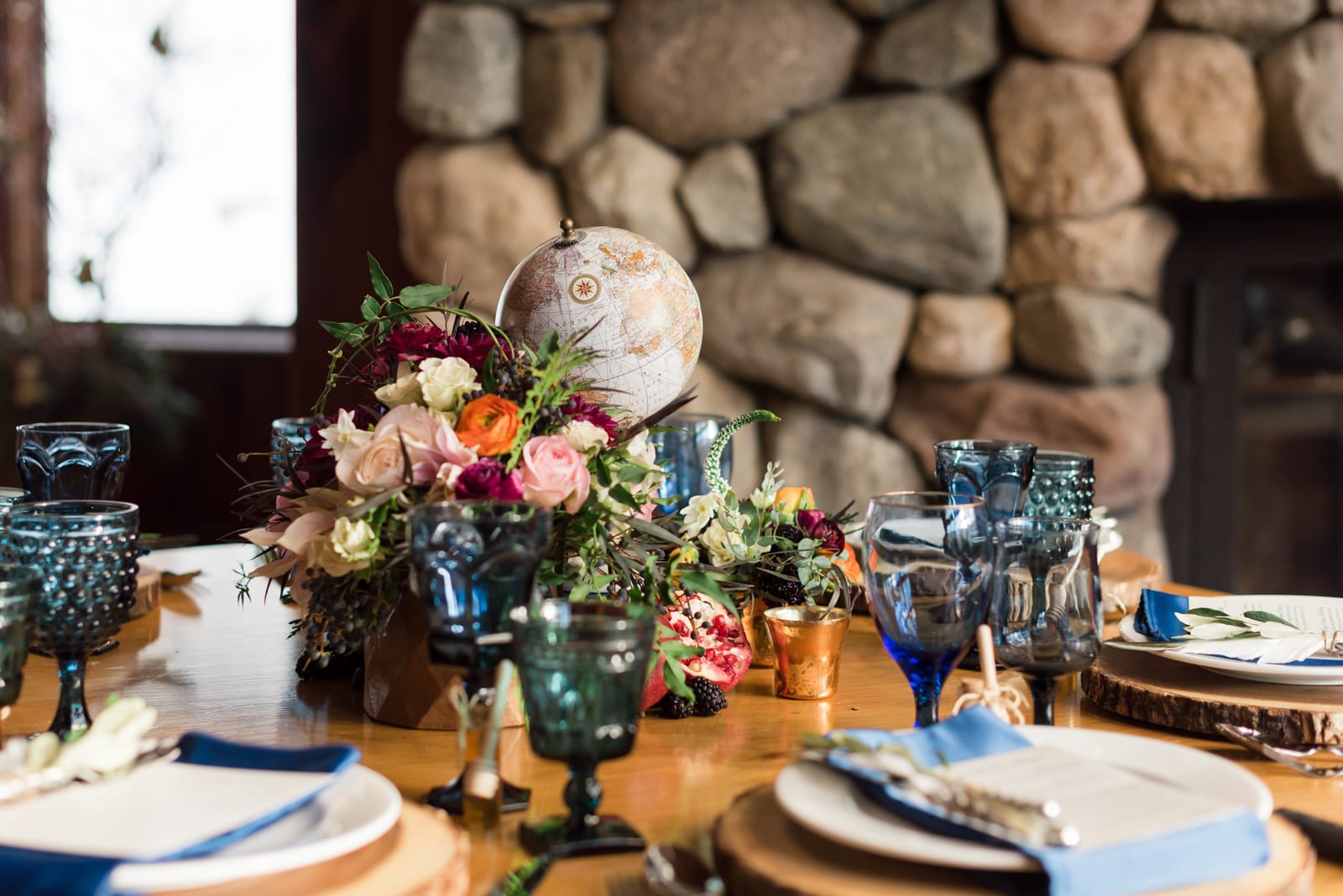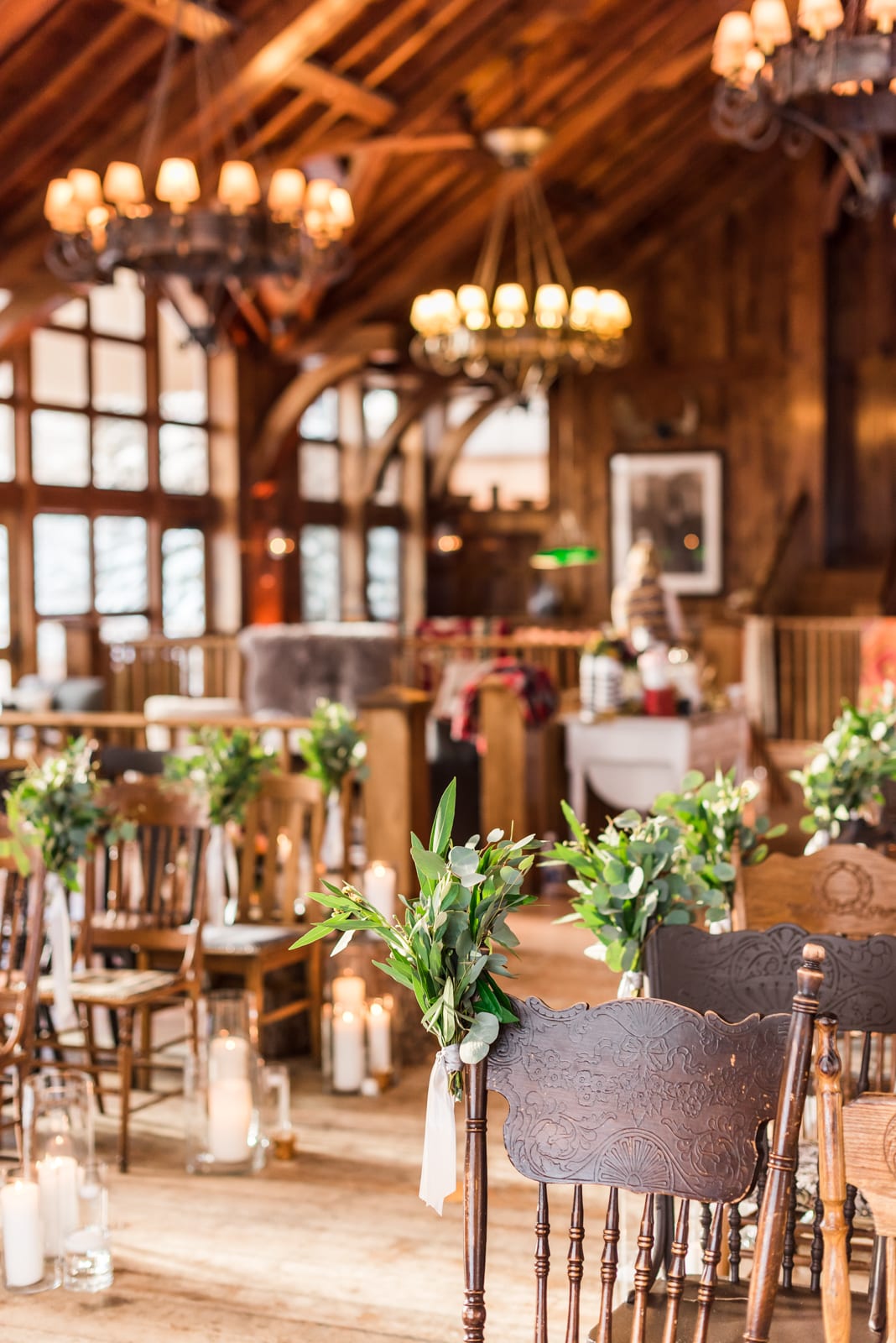 Not only was their SaddleRidge wedding venue in Beaver Creek beautiful, but Alana and Erick also embraced the DIY spirit by picking out candles, gorgeous flowers, perfect table toppers, plate settings, and “welcome” signs to add even more warmth to the lovely location. The stacked suitcases, vintage globes, and golden compasses gave off a very worldly vibe (a nod to the years they had just shared abroad before moving back home). Elsewhere, the warm colors of the flowers, glowing candles, and soft lighting produced an ambiance that made everyone feel at home. During the ceremony, candles illuminated a pathway down the aisle for the couple. We noticed that a few deer even had their eyes on the bride and groom!