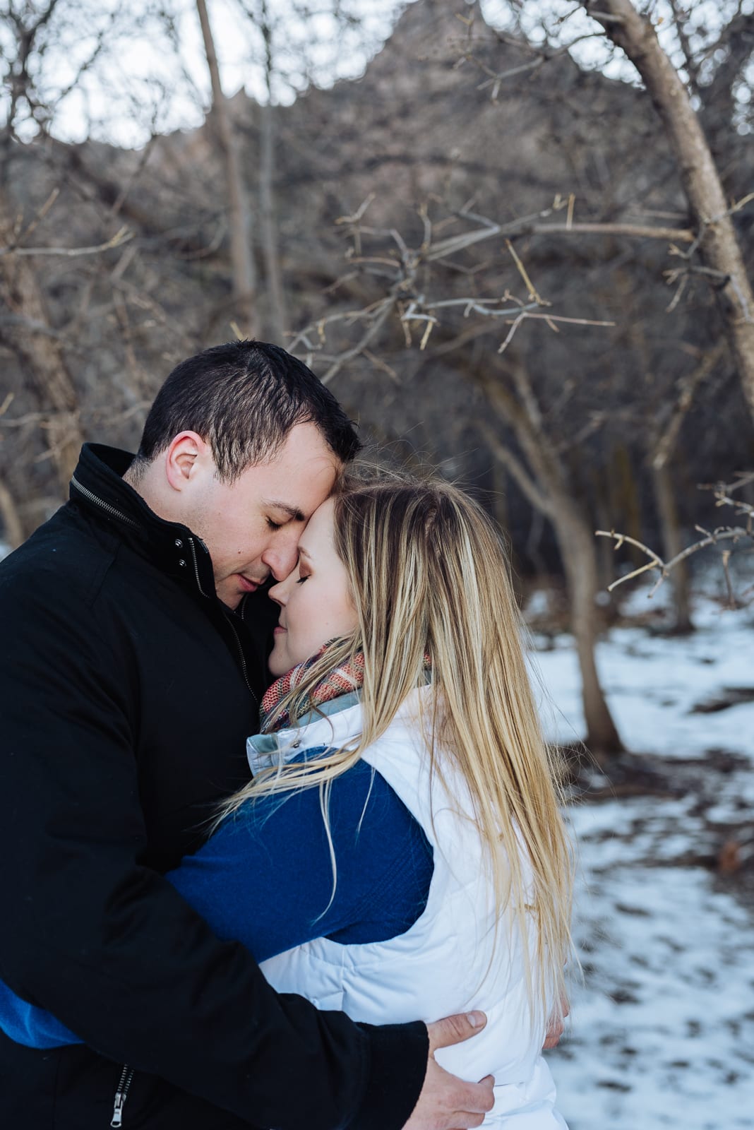 Looking great and feeling great go hand in hand. So, when you’re looking through your closet to find something to wear for your photo session it’s important to pick something that you’re comfortable in. It’s also always a good idea to pick an outfit that matches the location of your photo session. Chelsea & Xander dressed smartly in layers for their outdoor photo session. They also looked great in their simple and classic color choices, dark blues and greens. Their classic and simple color choices were timeless and sure to always be in style.