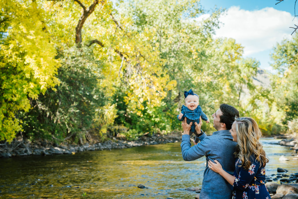The family of Nicole, Travis, and their “wiggly-worm” baby Margo are spending some time at Clear Creek in Golden, CO. Here they seize this cherished moment in their adorable baby’s life and celebrate their family unity.