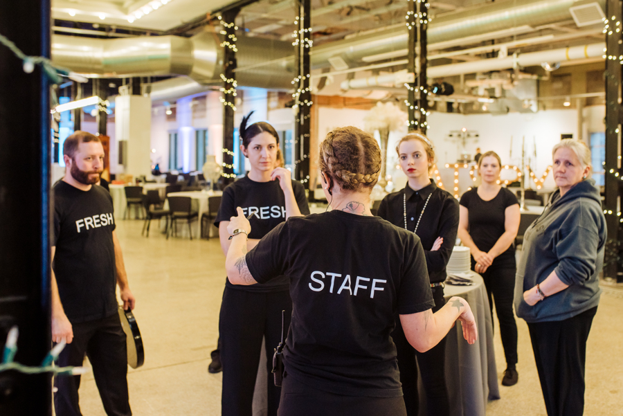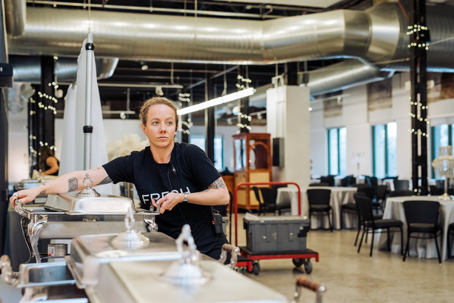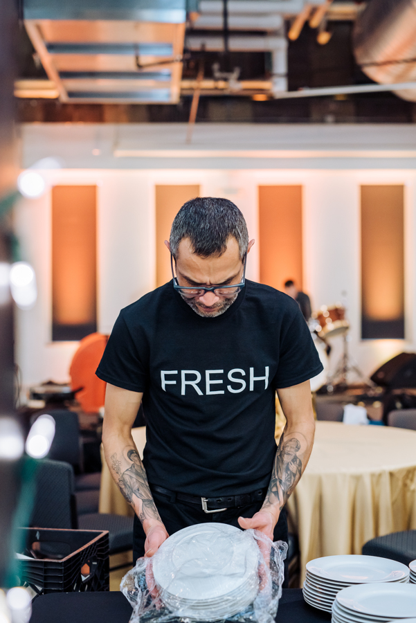 Staff work inside the Greek revival building of the McNichols Civic Center, famous for its classic Corinthian columns. Here, the Freshtrack employees display a good work ethic coupled with delicious meals fit for the Greek Gods! Whether you are planning to have Freshtracks serve you or your place of work, be sure to hit up From The Hip Photo! We would be sure to capture and savor the phenomenal moments you taste these mouth-watering dishes!