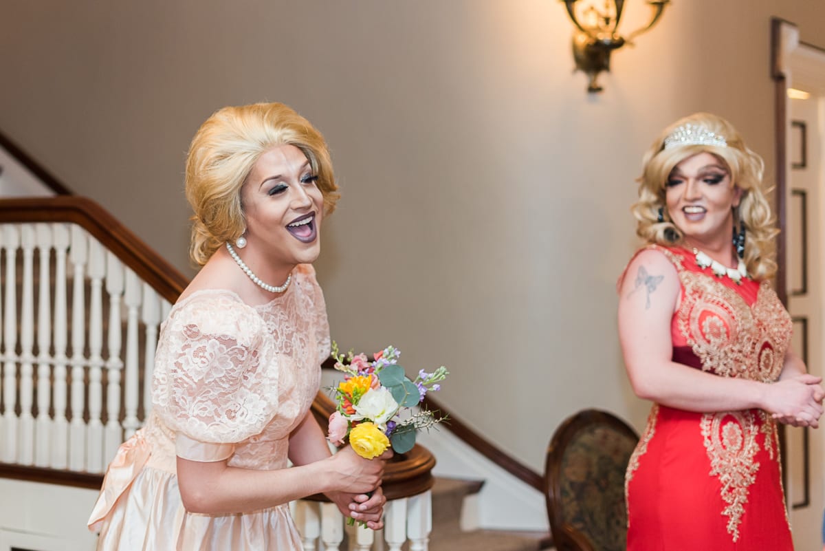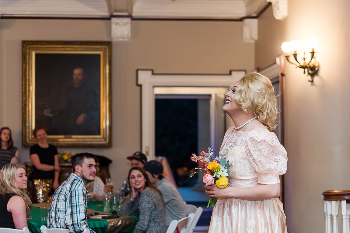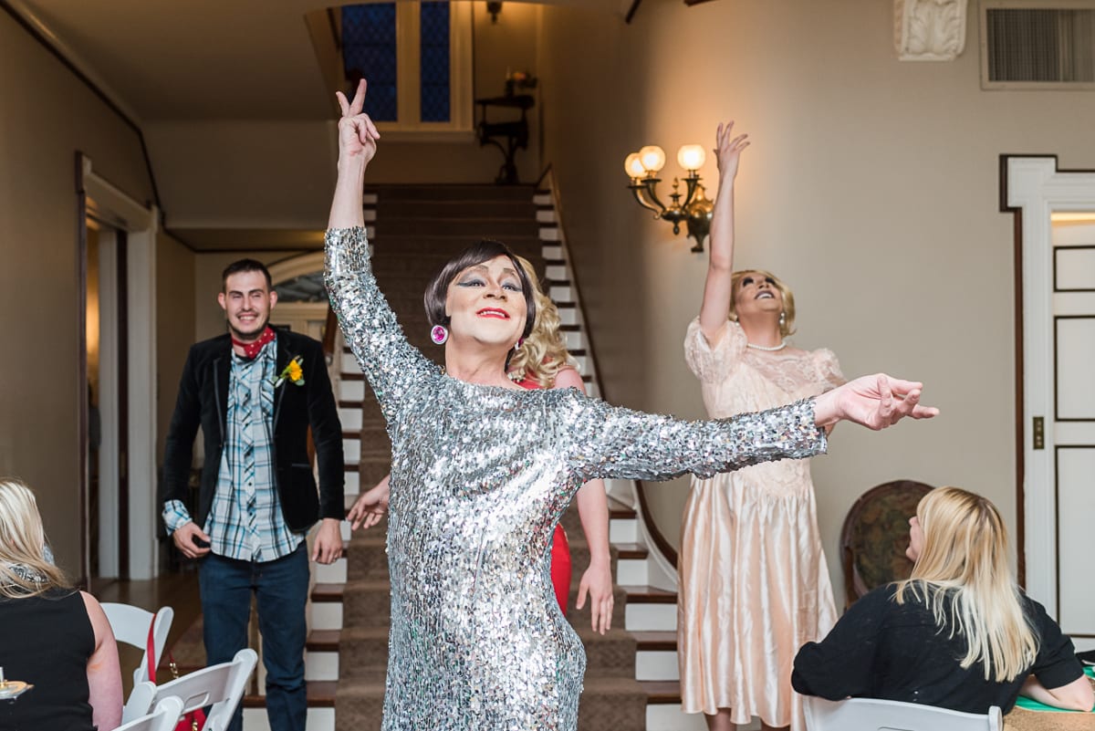 The highlight of the wedding show was most definitely the Grant-Humphreys Mansion wedding! Guests were enthralled by the “bride,” her maid of honor, and her mother as they strutted down the mansion’s stairs…dressed in drag! There was even a hilarious abundance of singing and dancing to songs about weddings.