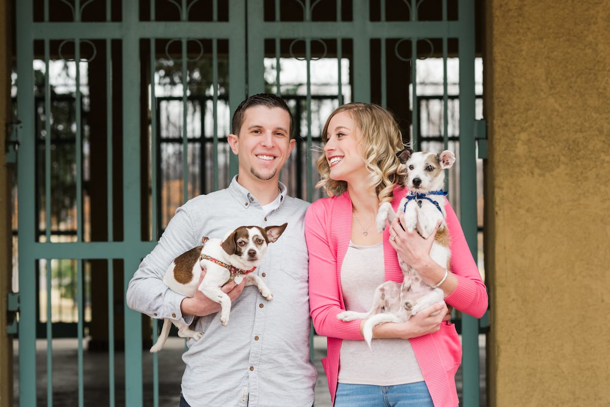 City Park offers a great variety of unique and interesting backgrounds, and we were able to get tons of stunning shots of the couple. From stucco archways to ornate wrought iron railings and trees galore— we were able to let our creative juices flow! Lucky for us, our couple and their pups were totally on board.