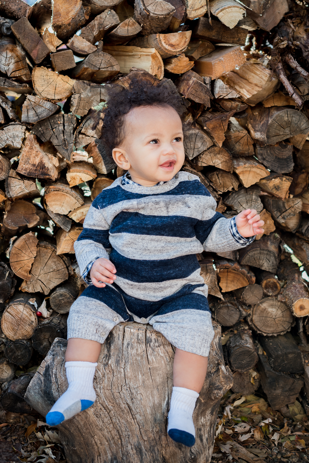 Mom and Dad’s tickles and airplane flights kept the two little brothers giggling and goofing the entire afternoon! The youngest wore a koala hat to keep his little ears warm. Plus, the oldest was happy to keep his younger brother entertained and enthused with sticks, hands, and a little tree trimmer.