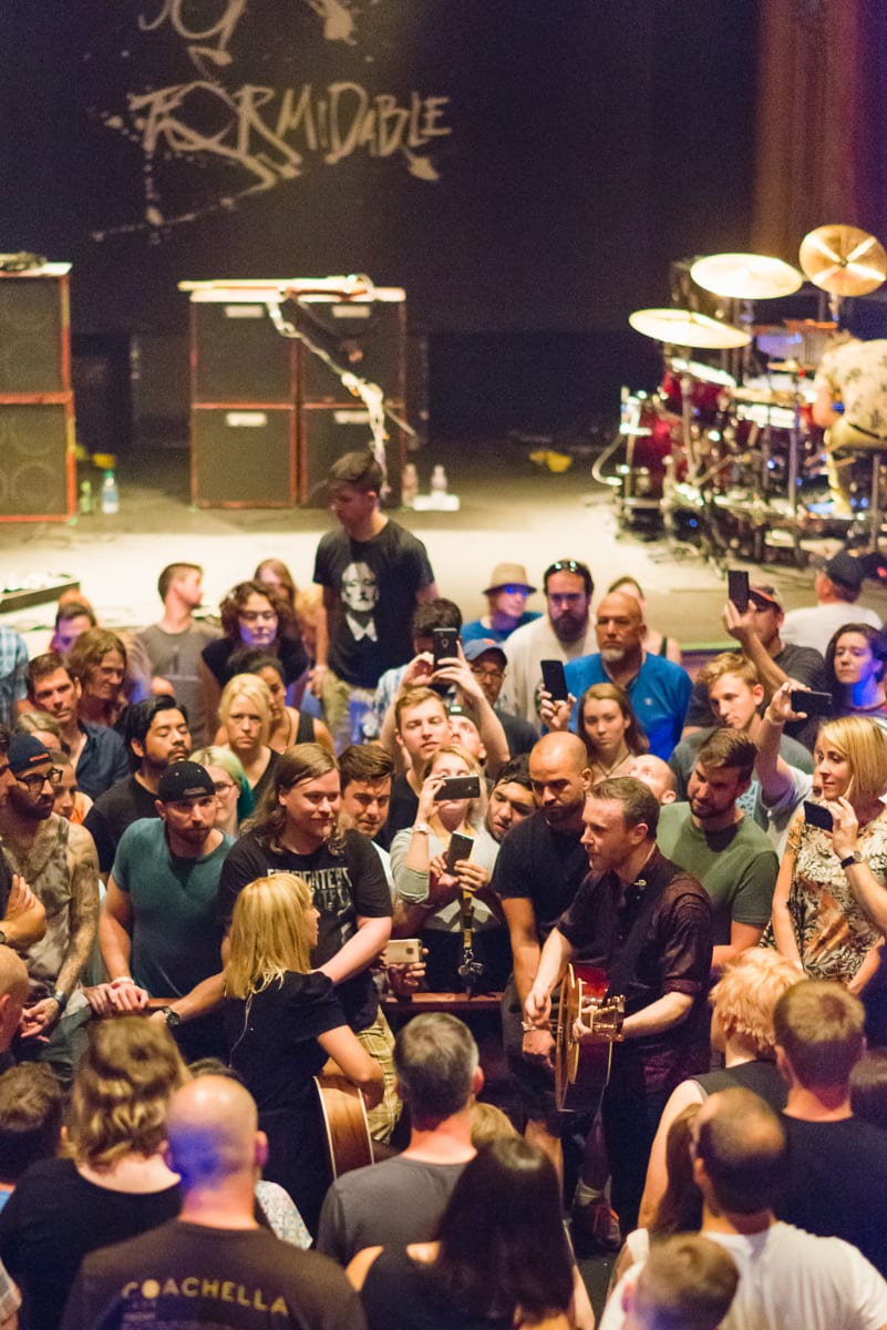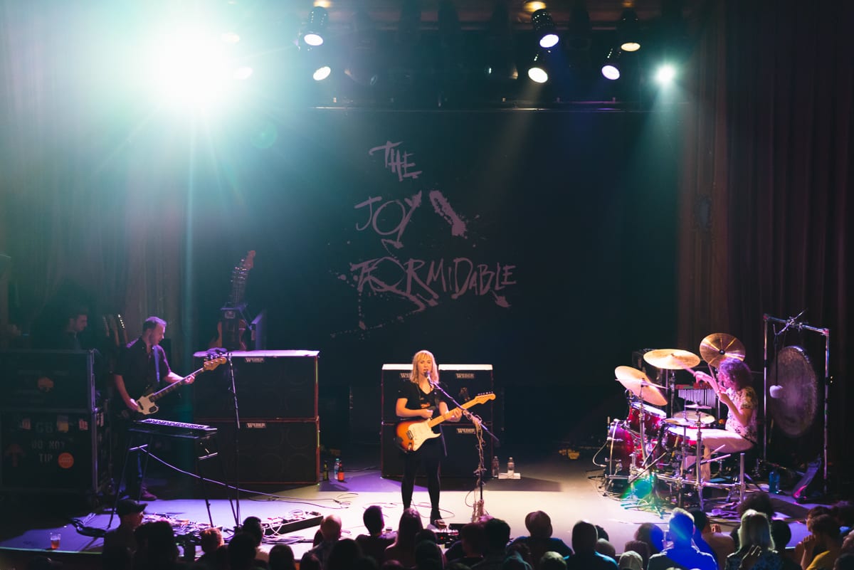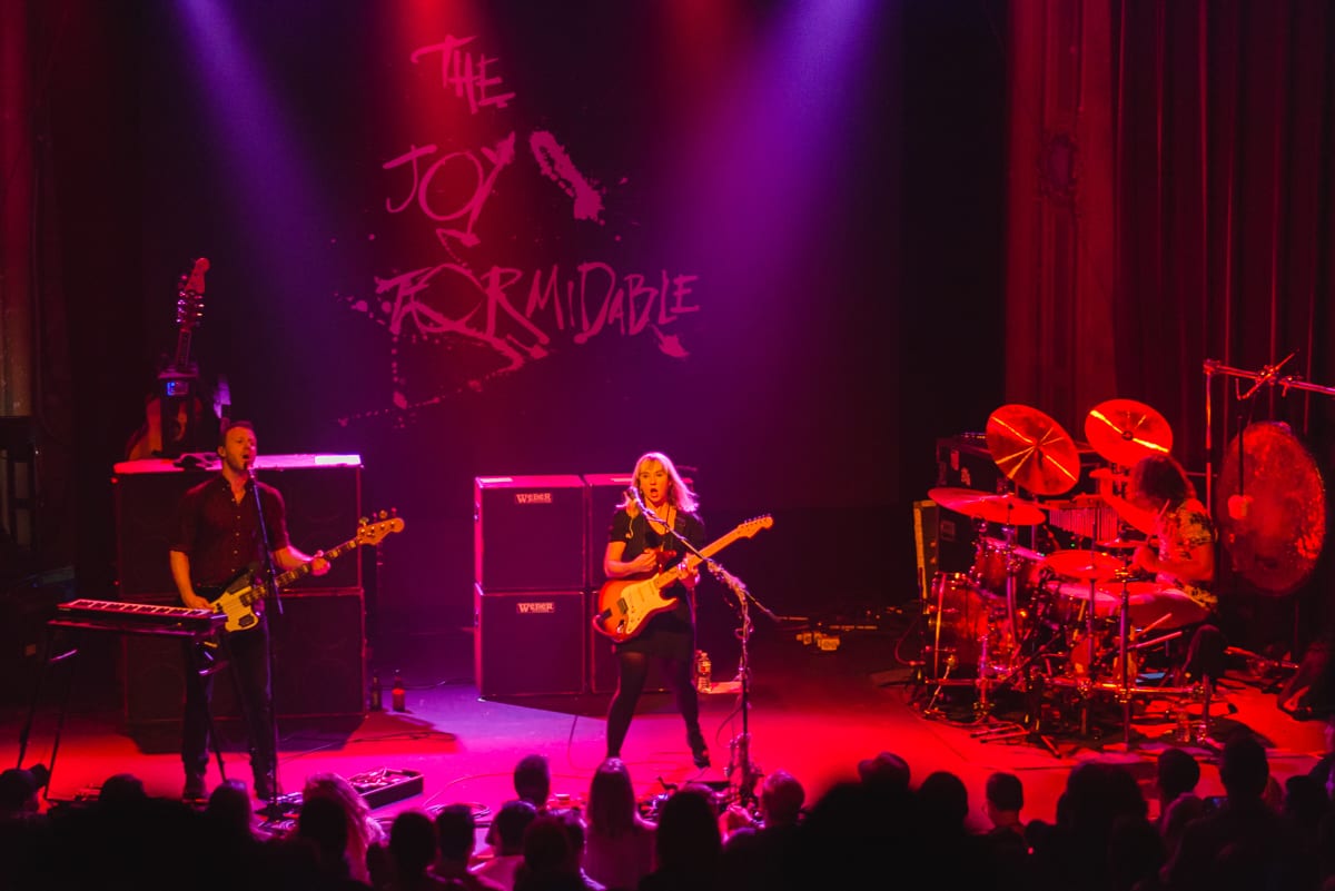 Perhaps the most memorable portion of the night’s performance was how The Joy Formidable began their encore. After the high volume antics of their main set (and some climactic gong-banging from drummer Matt Thomas), vocalist/guitarist Ritzy Brian and bassist Rhydian Dafydd came out into the audience for an acoustic performance. With the house lights turned up, the two were enveloped by an appreciative crowd before heading back to the stage to close things out with a properly electrified tune.