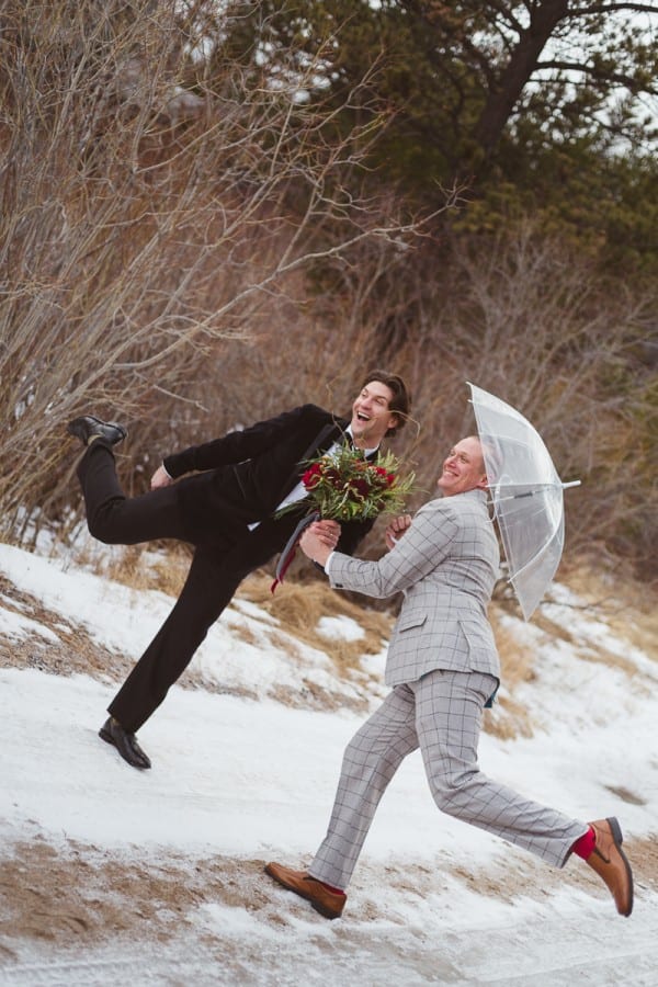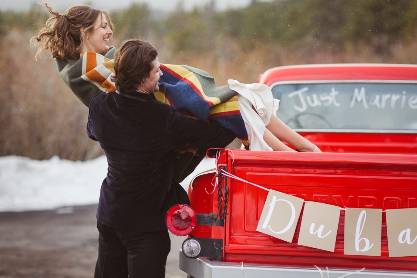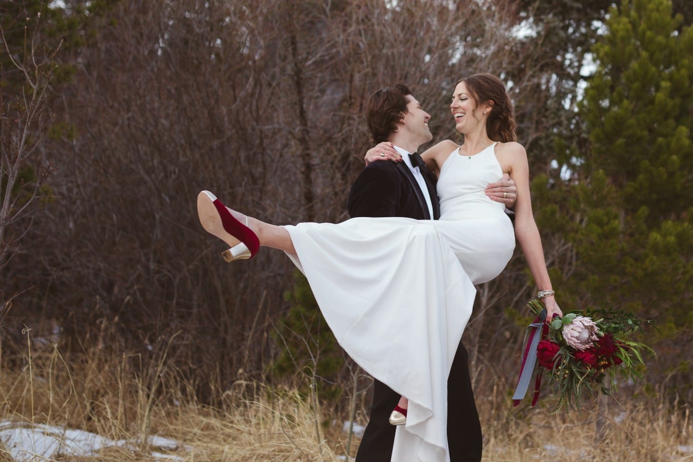 The intimate and joyful ceremony was held at the Chapel on the Rocks, which has the charm of an old European church, while nestled with the most breathtaking views of the Rockies! Afterwards, we all froze a little bit to capture some spectacularly snowy photos around Rocky Mountain National Park and headed to Mary’s Lake Lodge for a second ceremony and fabulous reception. Pomegranates, greenery, and candlelight were the main theme of the decor, and we were even on hand to have fun with a delightfully 20’s photo booth station!
