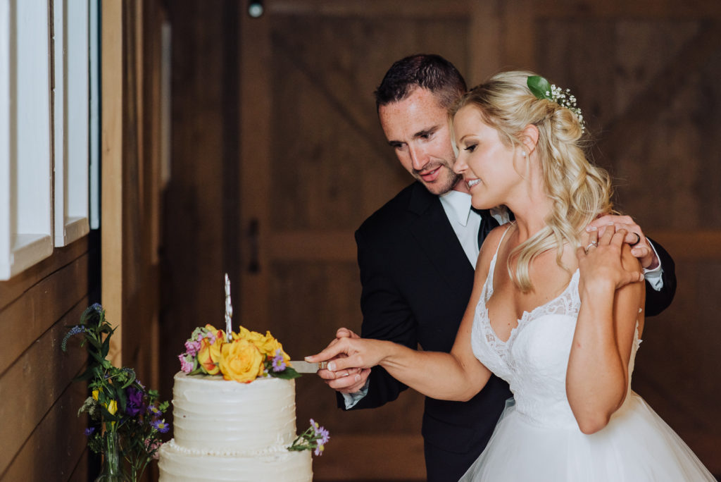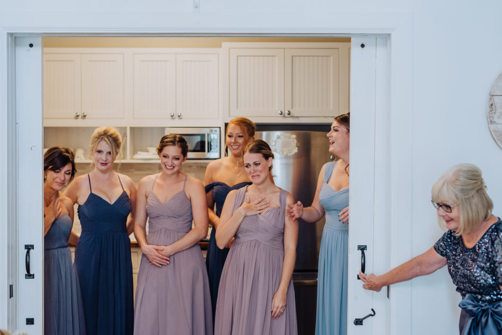 Meeting at the heavenly bridal cottage just steps from the barn, Laurel and DJ take the time with their families and loved ones to prepare for “I do.” This dear cottage comes equipped with mirrors, counter-tops and a small kitchen with a romantic Victorian edge.
