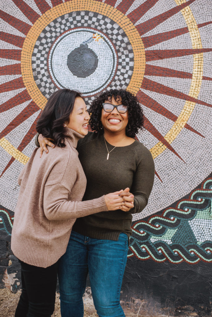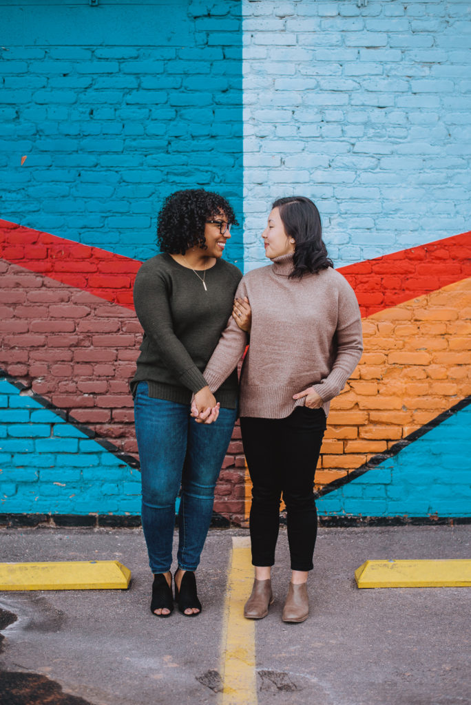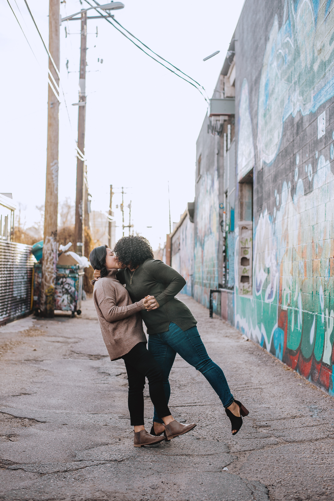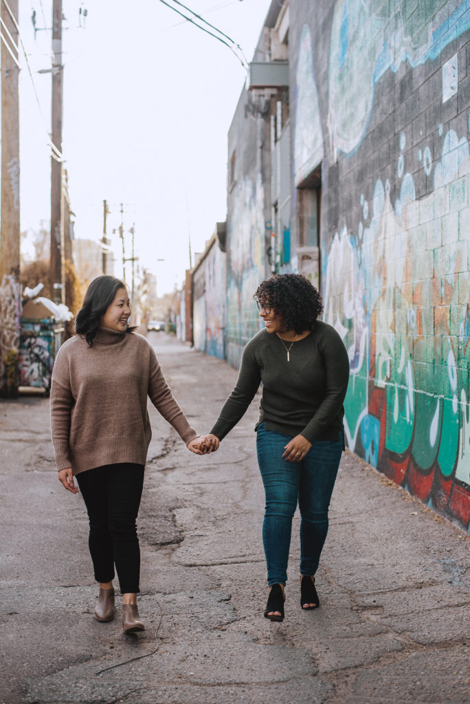 Jaelyn and Jenny met up with us in the heart of RiNo at a local coffee shop, Crema Coffee House. They enjoyed a shot of espresso, and it those first few moments, it was easy to see how deep their love is. We spent time walking around the alleys to different murals. Our favorite thing is to keep you moving! We had them dance, and walking and chatting, just enjoying each other’s company as we documented their love.