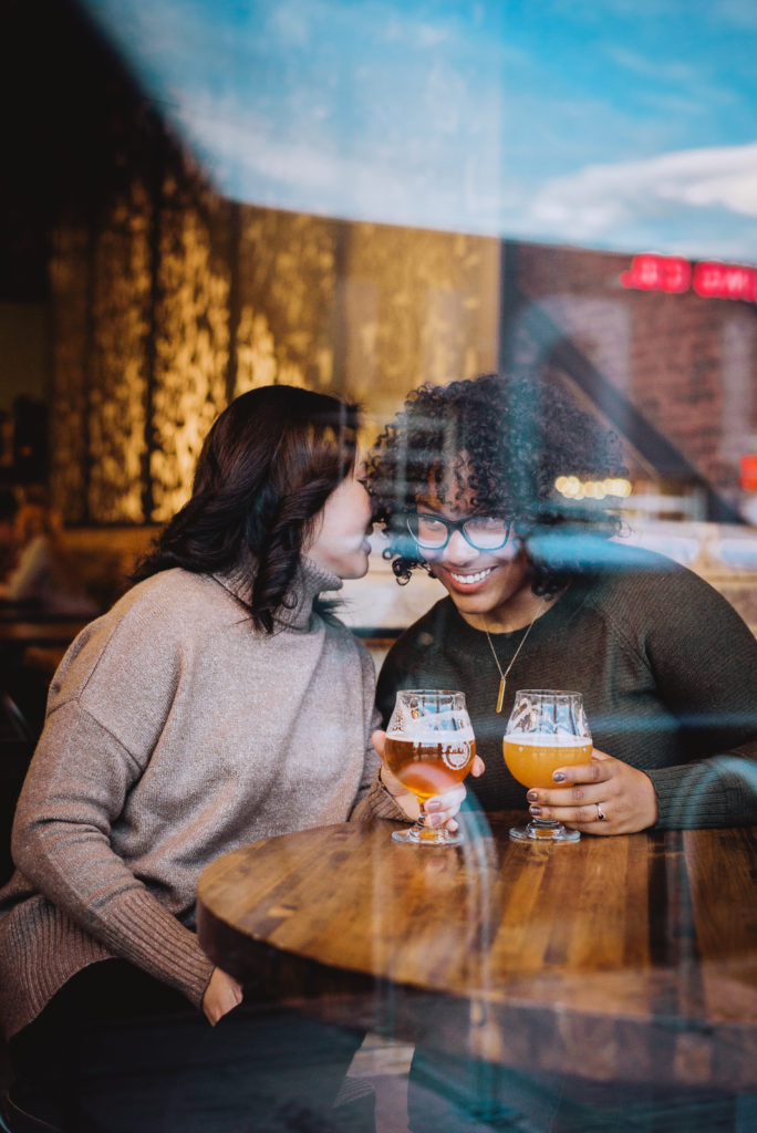 We ended at Odell Brewery Company and captured them enjoying a beer! We love playing with reflections! It is like looking into their love story, cheesy we know, but their story is just amazing. But this is just the beginning! Just a week before we teamed up with these two, Jaelyn let us know that she had just proposed to Jenny, yay! Love, after all, wins. We love these two and we wish them nothing but the best!