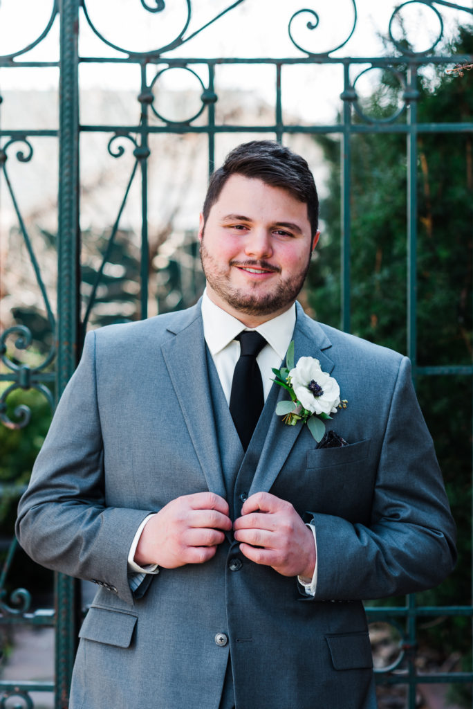Logan looks like he’s more than ready to see his bride to be! The suave shade of grey in his suit flatters his kind, gentle eyes. Perhaps a teddy bear disguised as a Prince!?