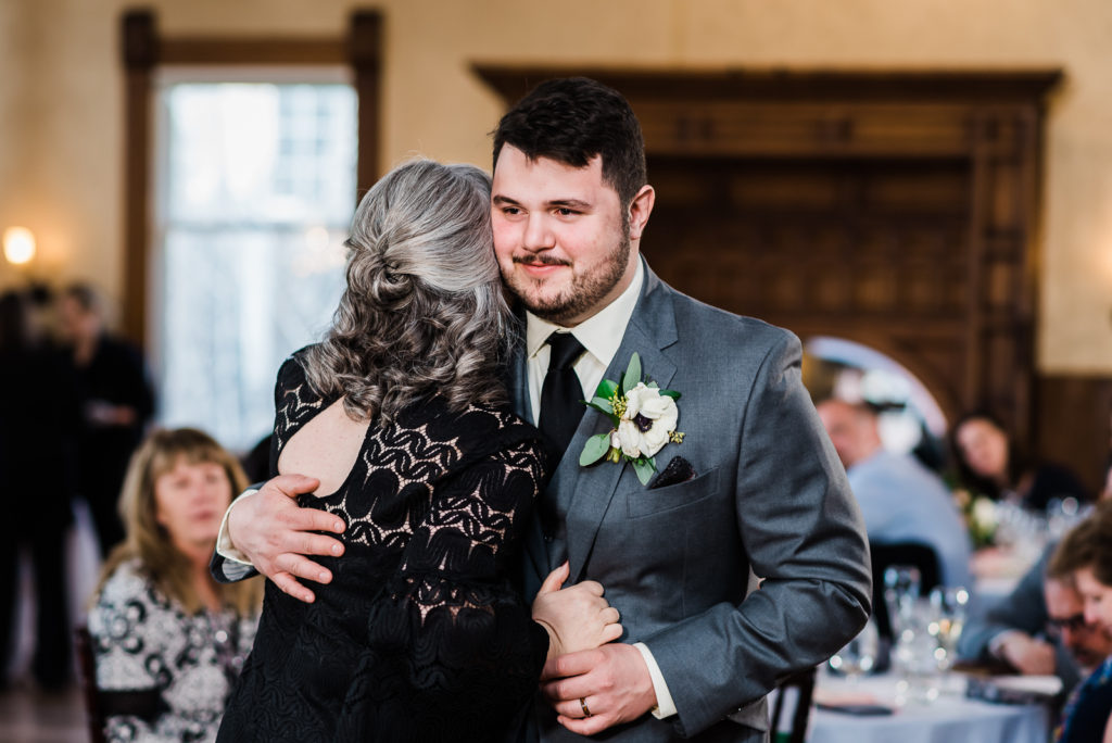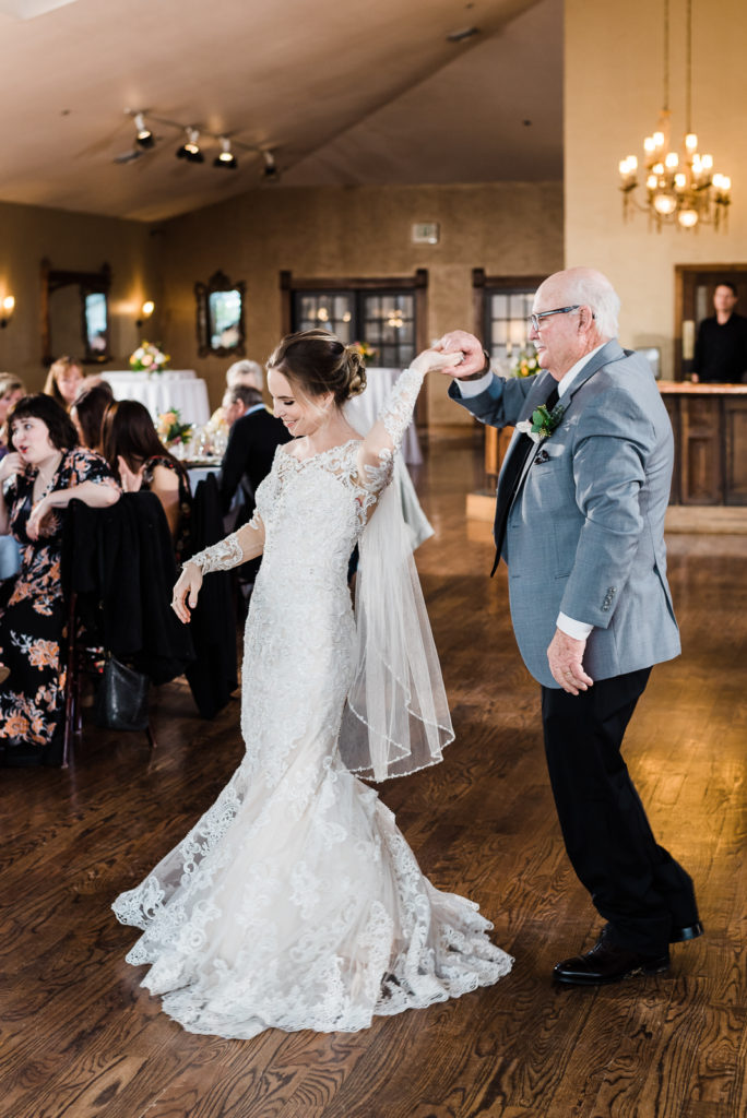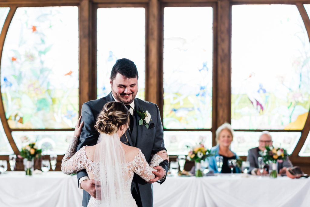 Madison and Logan celebrated their union with a delicately dressed, three-tiered white wedding cake to match Madison’s lace dress. Madison was beaming with joy during father/daughter dance! Logan also had an especially adorable moment with his mom during their dance! During their first dance, Madison & Logan are radiating happiness! They look like a prince and princess of the romantic era! Let them eat cake!