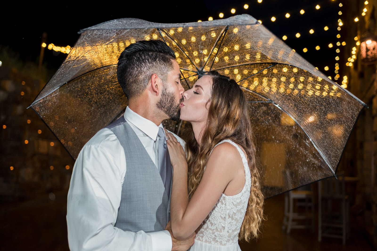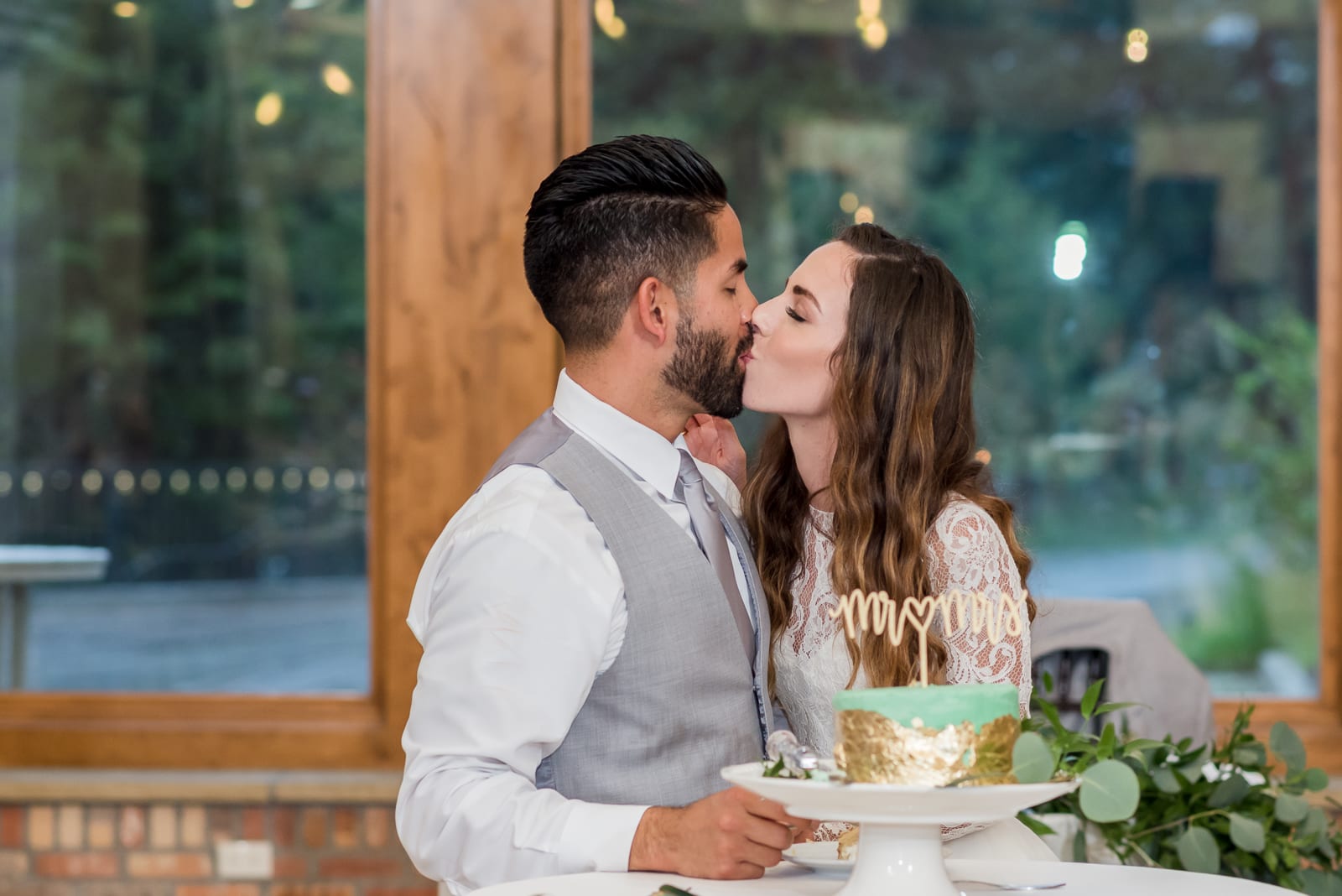 Della Terra combines peaceful mountain terrain with exciting party-time vibes. So, the building’s stone and wood exterior made a perfect backdrop for this couple’s romantic photos. While outside drizzled rain, the inside venue glittered with hanging lights and lively guests brimming with smiles! Lucky for us, we got to witness it all!