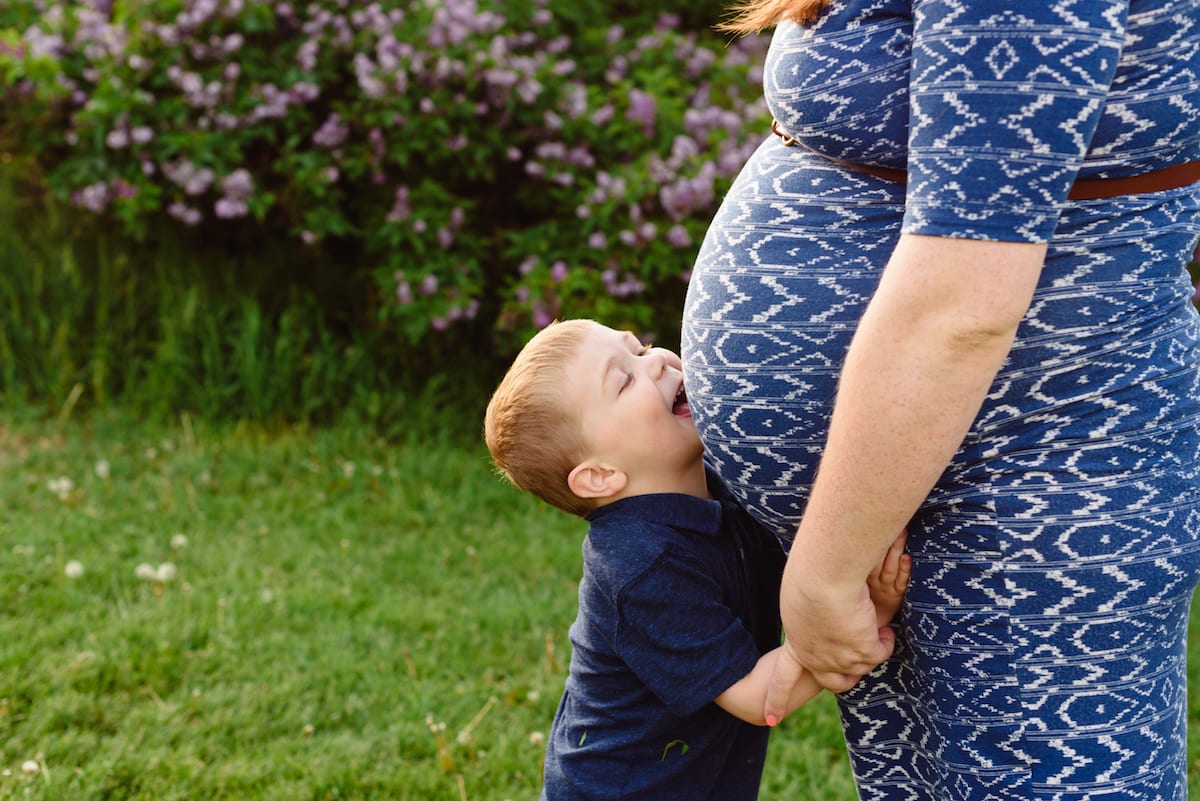 Be silly! The best shots are the ones when we forget there’s a camera there. Let your kids do some finger painting on your belly and leave some hand prints on your bump. Have dad give your kid a piggy back ride while stealing a smooch from you. Take some photos in a natural setting like your house/bedroom while the kids are jumping on the bed. Make a sign for your kid to hold that says “I am going to be an older brother/sister”. Bring balloons, blocks to spell out their name or baby shoes as props!