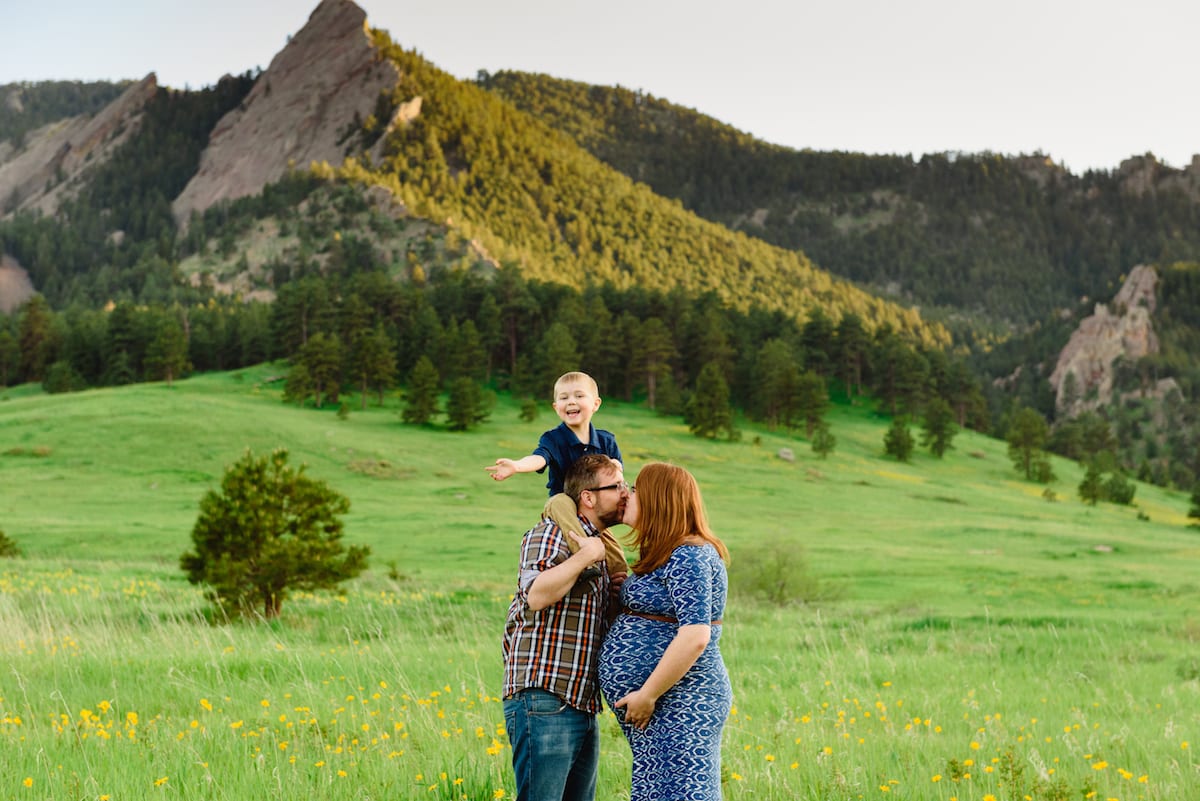 Be silly! The best shots are the ones when we forget there’s a camera there. Let your kids do some finger painting on your belly and leave some hand prints on your bump. Have dad give your kid a piggy back ride while stealing a smooch from you. Take some photos in a natural setting like your house/bedroom while the kids are jumping on the bed. Make a sign for your kid to hold that says “I am going to be an older brother/sister”. Bring balloons, blocks to spell out their name or baby shoes as props!