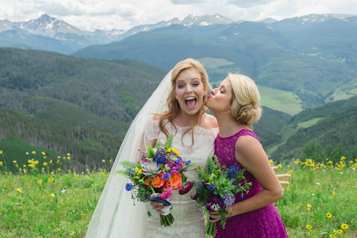 If you’ve ever had the pleasure of frolicking around Vail in July, you already know how stunningly majestic a setting it makes for a wedding. Wildflowers dot the landscape, snow-capped mountain peaks tower all around, and the lush greens of the evergreens and mountainsides take your breath away. Matt and Lindsay have such big hearts and were such a treat to photograph during their outdoor Vail wedding at The Lodge at Vail on the stunning Vail Wedding Deck overlooking the Colorado landscape. As one of Matt and Lindsay’s bridesmaids put it during her toast, “We don’t have mountains like this in Alabama!”